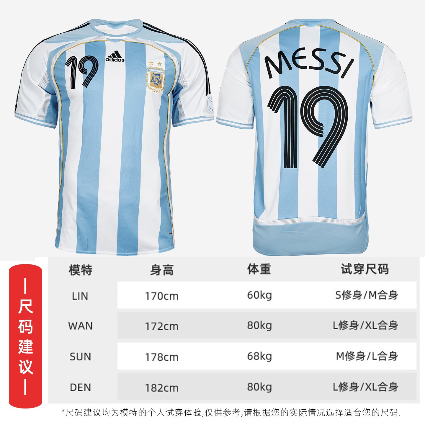 📚 天朗足球阿迪达斯2006复刻阿根廷主场梅西球迷版球衣足球服JN3708