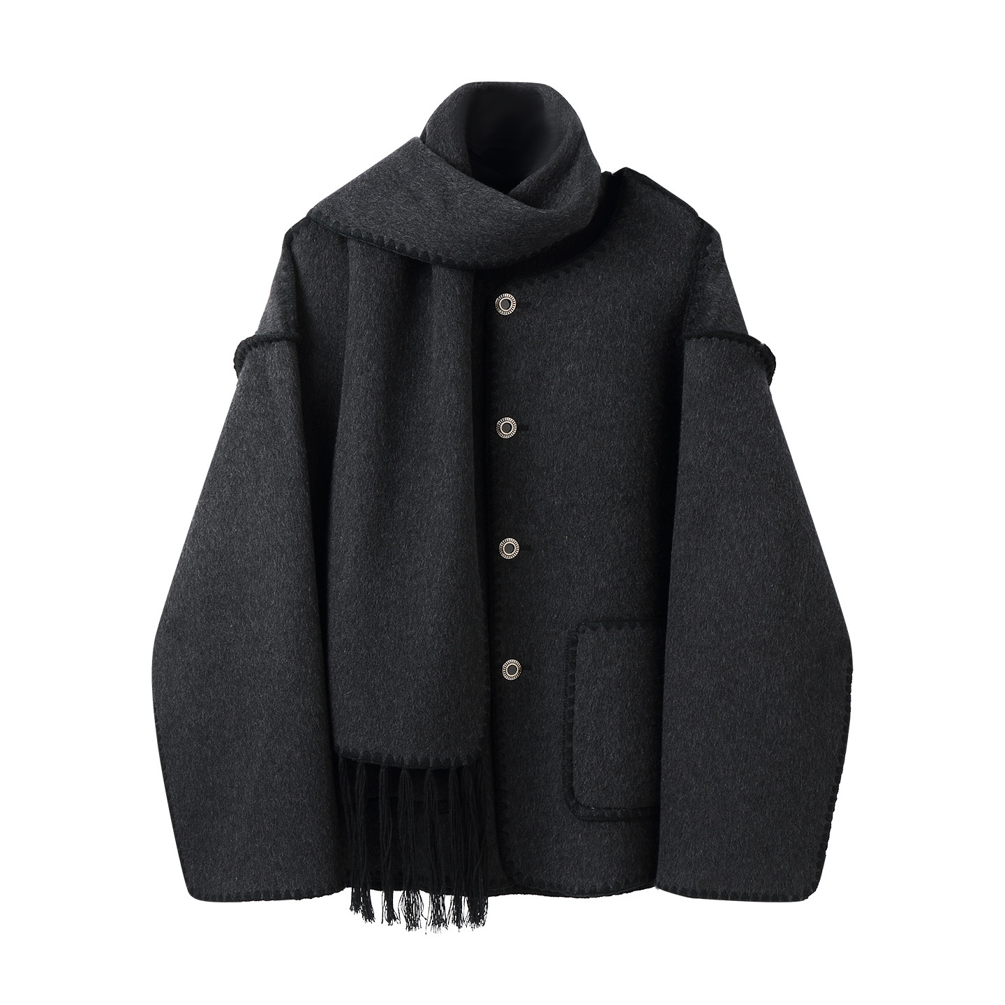 卢浮宫白口斗篷中长加厚