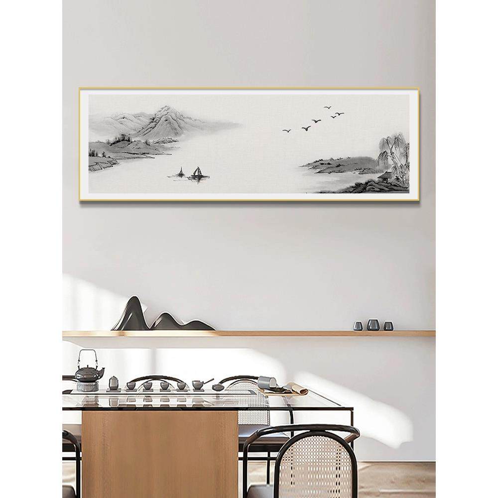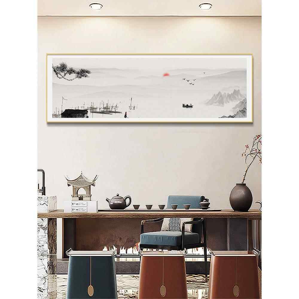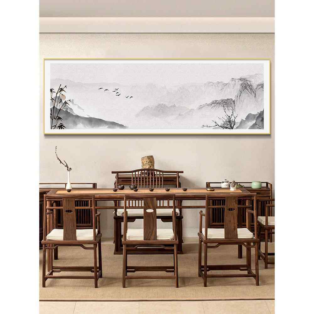 📚 中国古代山水画中国客厅装饰挂画办公室书房茶室壁画横幅茶室壁画