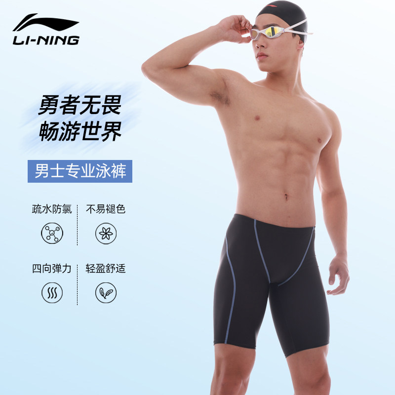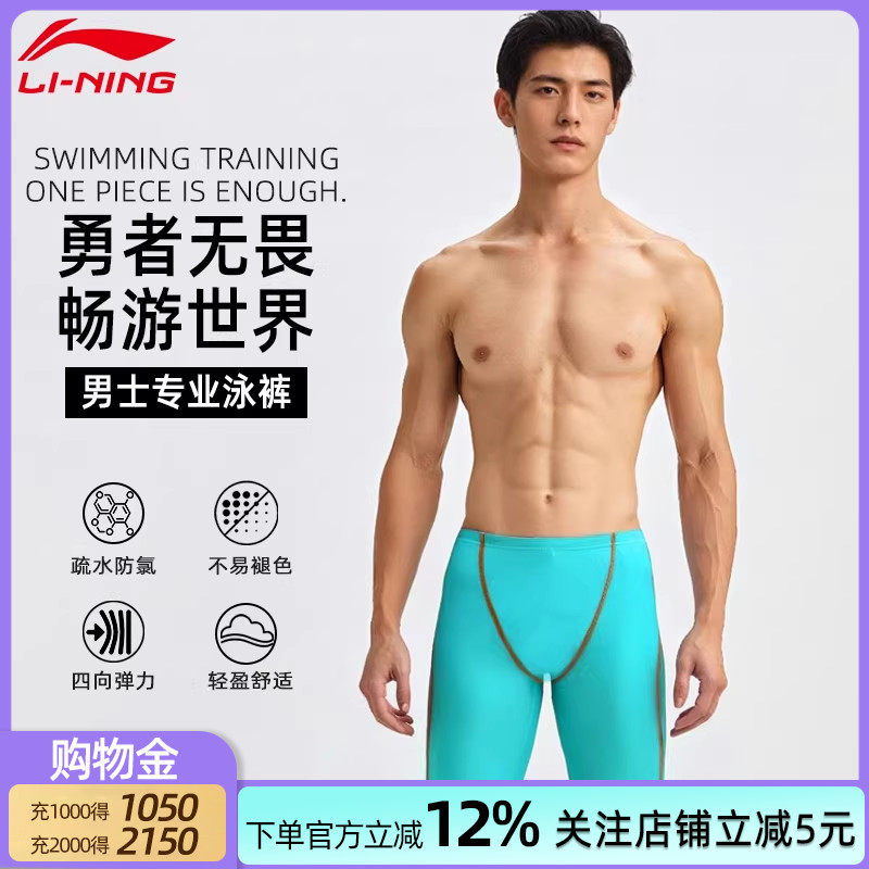 📚 李宁2025新款五分泳裤男款成人速干专业训练男大码男士及膝游泳裤