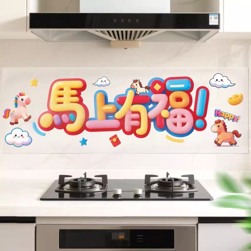 📚 新年厨房防油静电贴灶火瓷砖墙面耐高温防水贴画自粘加厚装饰贴纸
