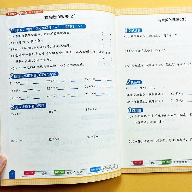 📚 有余数的除法练习册数学专项训练二年级有余数除法口算题卡竖式计算应用题看图列式解决问题思维训练易错题案例解析举一反三培状元