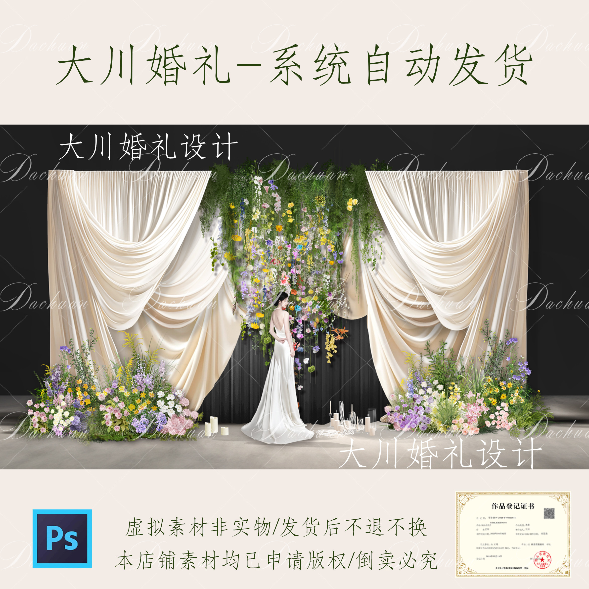 29¥ CZ007 wAxGUmjJZGU¥ https://m.tb.cn/h.7EvVuis L99多巴胺彩色花园花艺设计法式布幔婚礼串花合影区效果图 --------------------- 【原售价】19.9元 【现售价】19.9元。