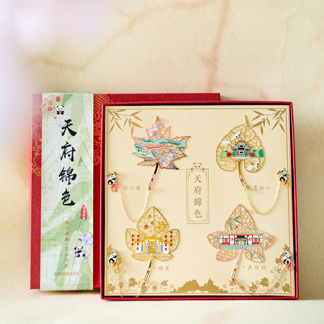 📚 四川成都都江堰青城山锦里武侯祠地标建筑叶片书签景点金属精致礼品毕业送老外旅游伴手礼城市印象定制纪念品