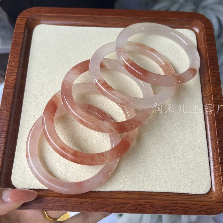📚 天然新疆金丝玉桃花酿手镯紫罗兰飘花玉镯粉红桃花酿圆条美人镯子