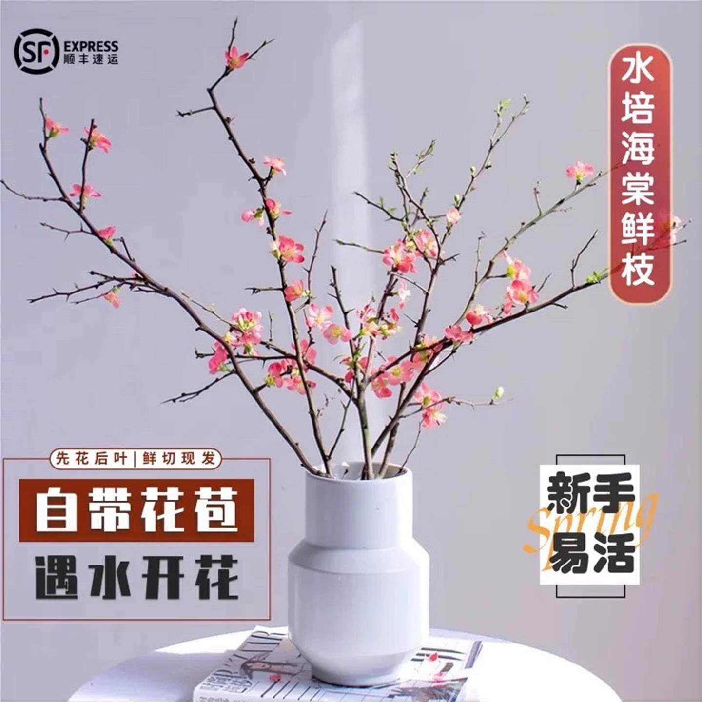 📚 水培鲜枝海棠干枝室内水养花卉枯木逢春雪柳干支遇水开花水培植物