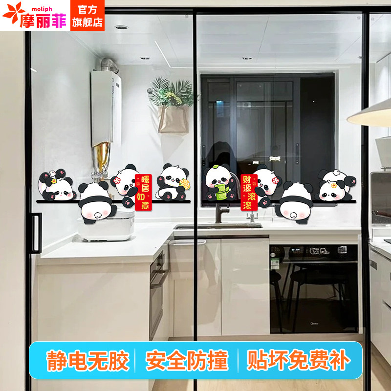 📚 2025新款熊猫厨房防撞玻璃门贴纸窗贴阳台推拉门装饰静电贴高级感