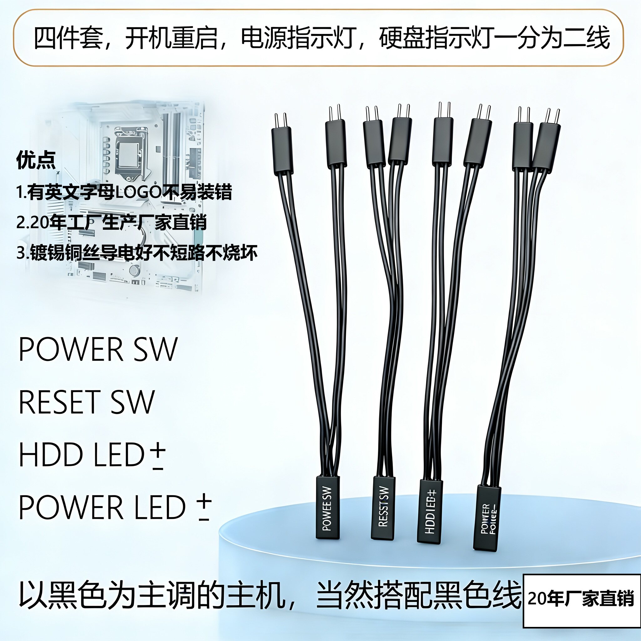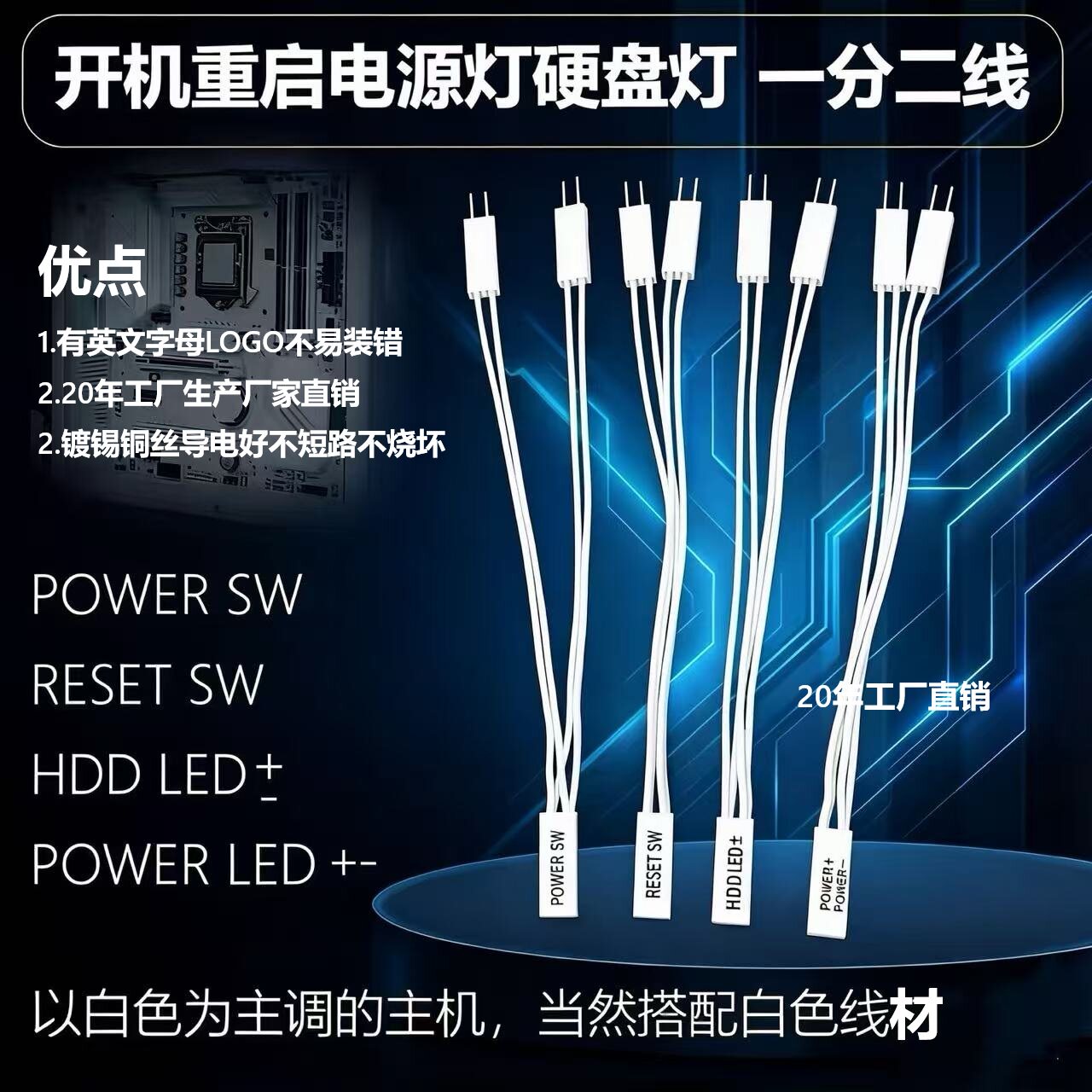 📚 主板电脑开机线一分二机箱桌面开关外接键保留原开机灯光重启功能