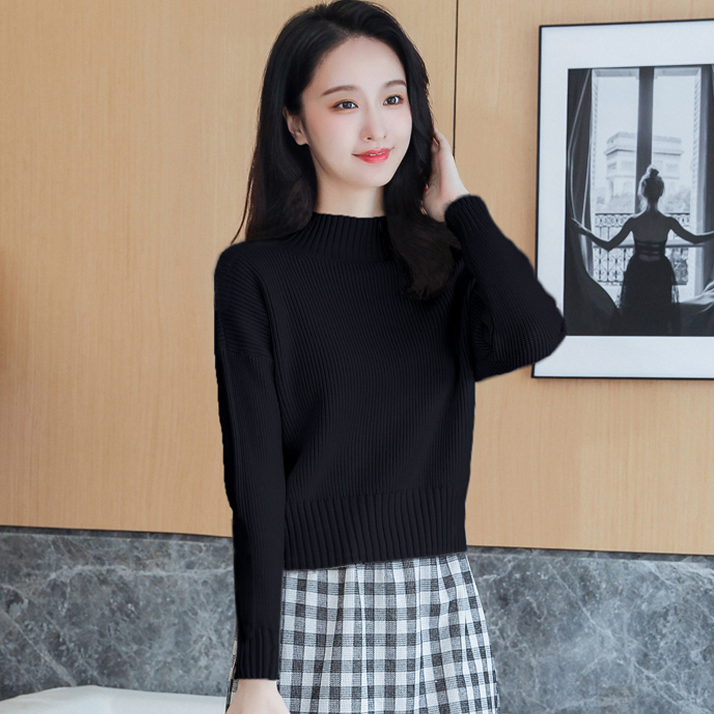 📚 半高领短款毛衣女冬季加厚宽松可外穿内搭打底衫小个子针织衫上衣