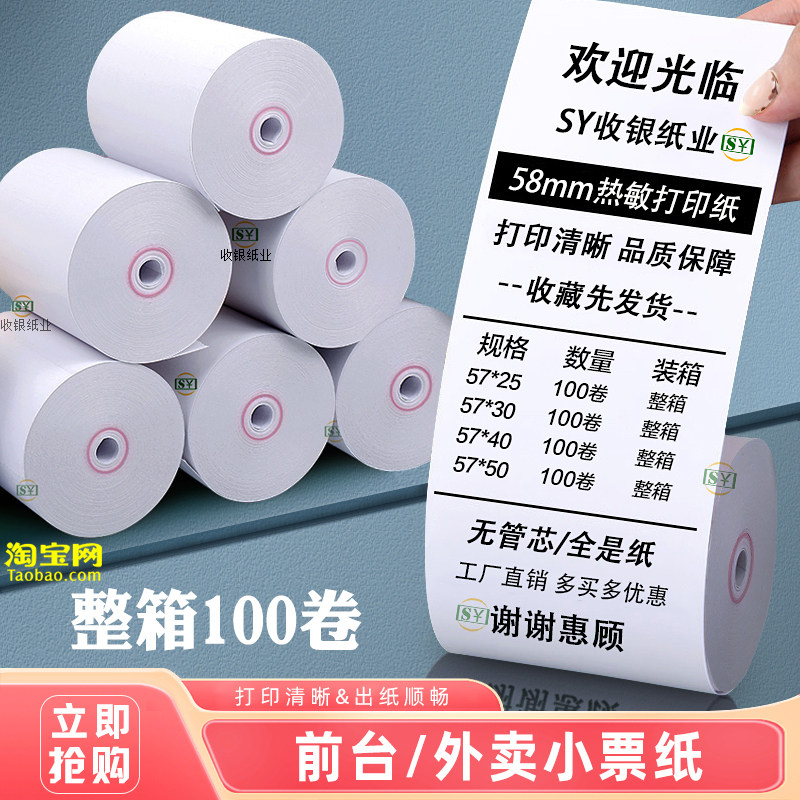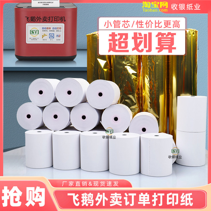 📚 收银机打印纸57x50美团飞鹅外卖订单打印纸热敏57×50收银纸80x80