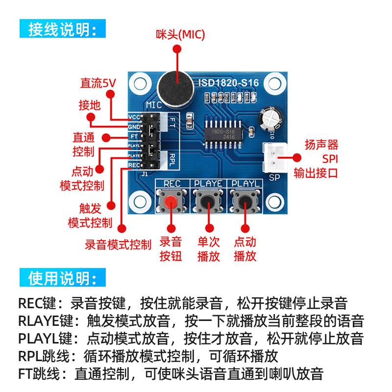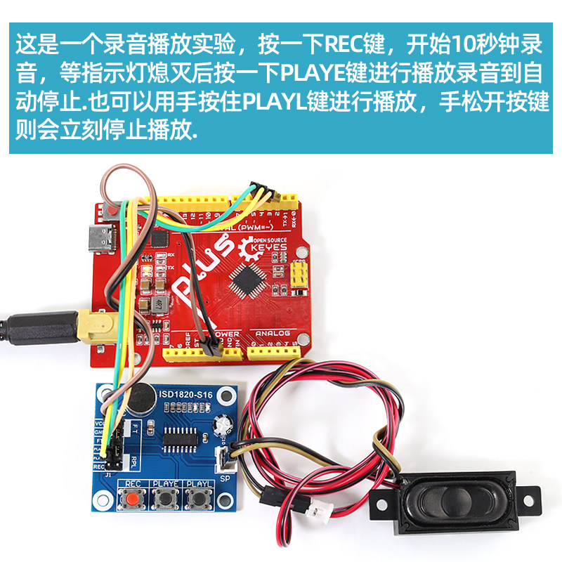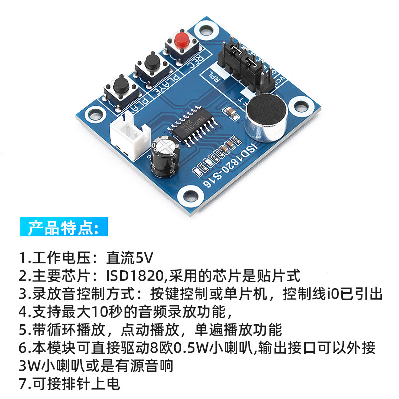 📚 ISD1820录音语音模块录放音模块板带咪头带喇叭可单片机控制