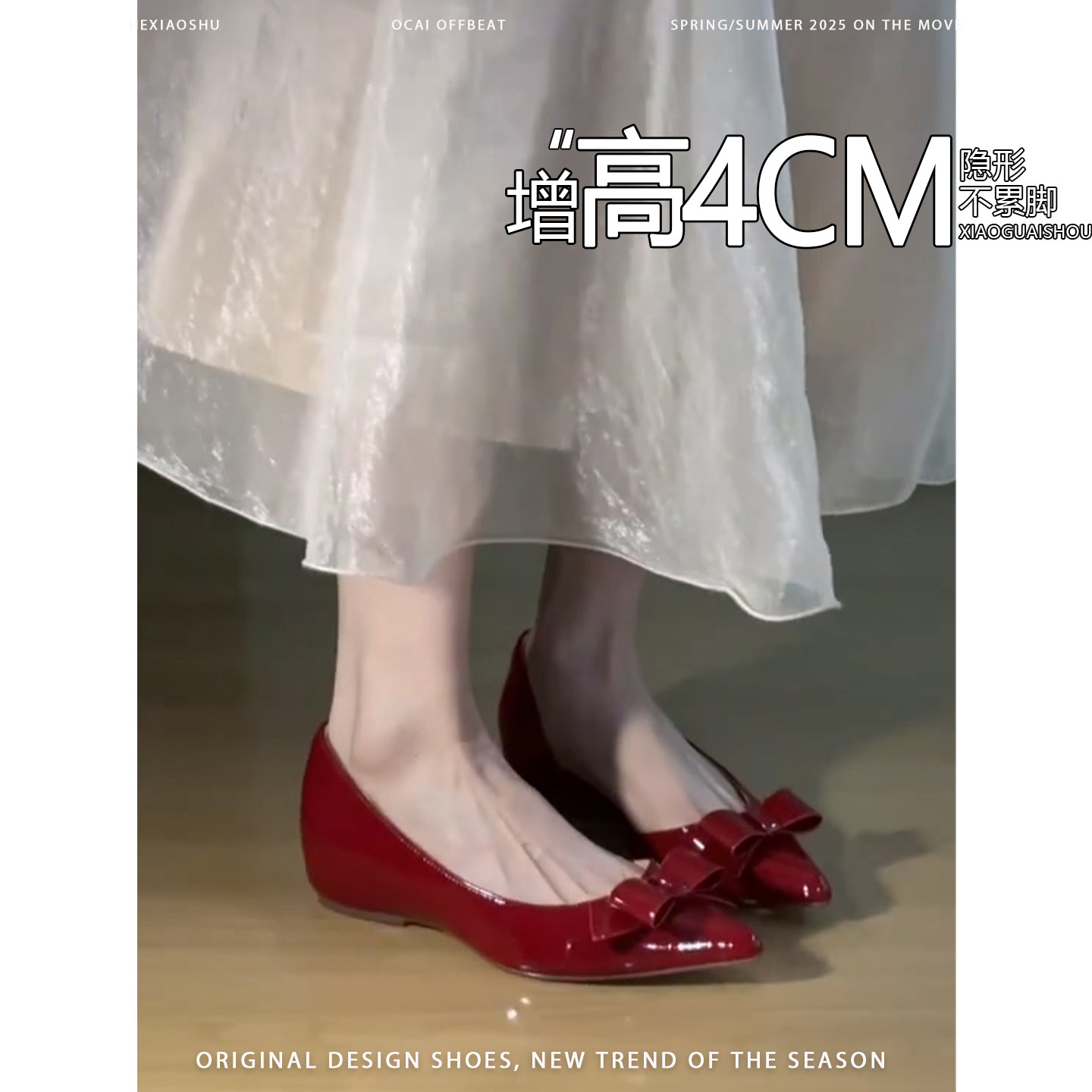 📚 羊皮版法式内增高仙女风侧空浅口单鞋2026新款一脚蹬蝴蝶结平底鞋