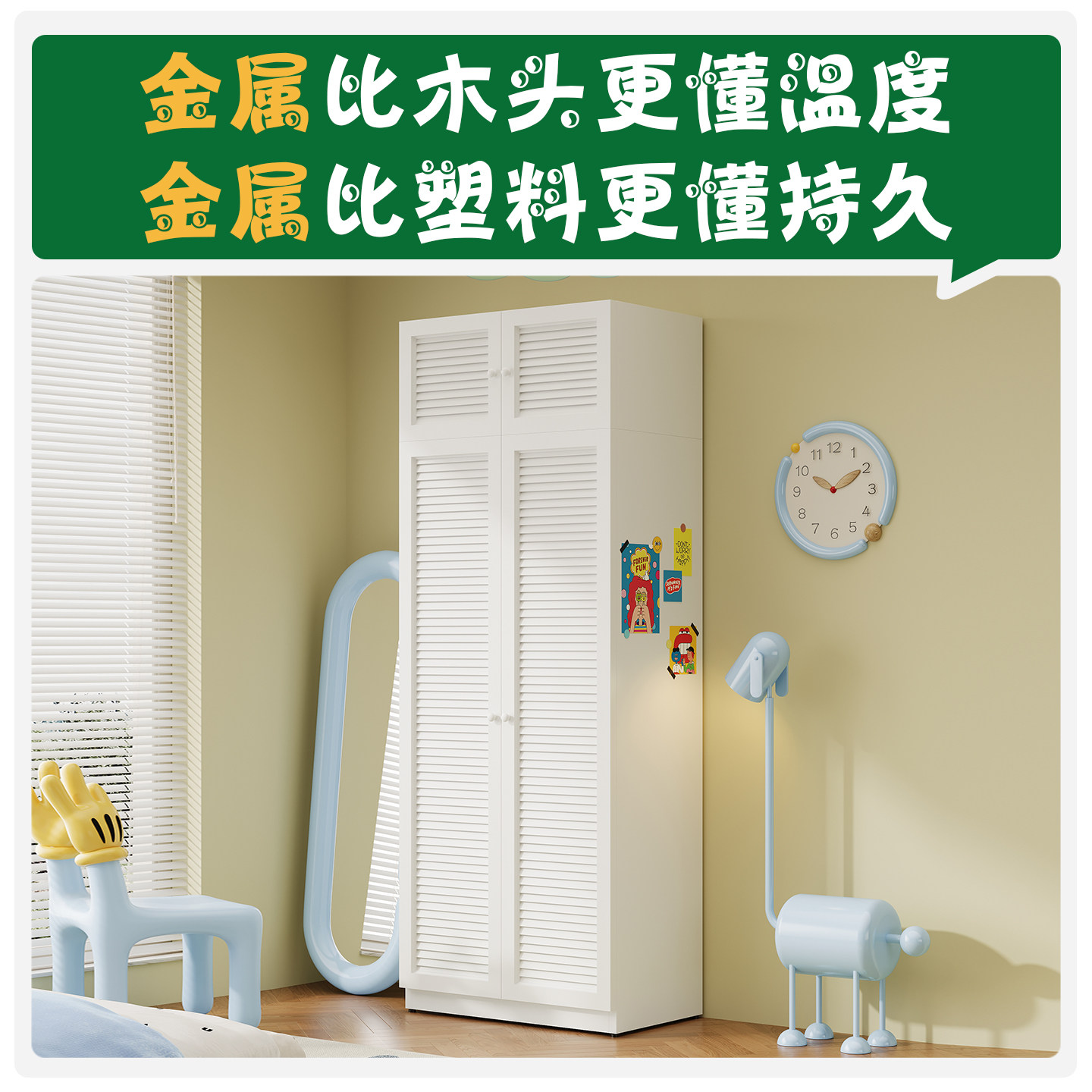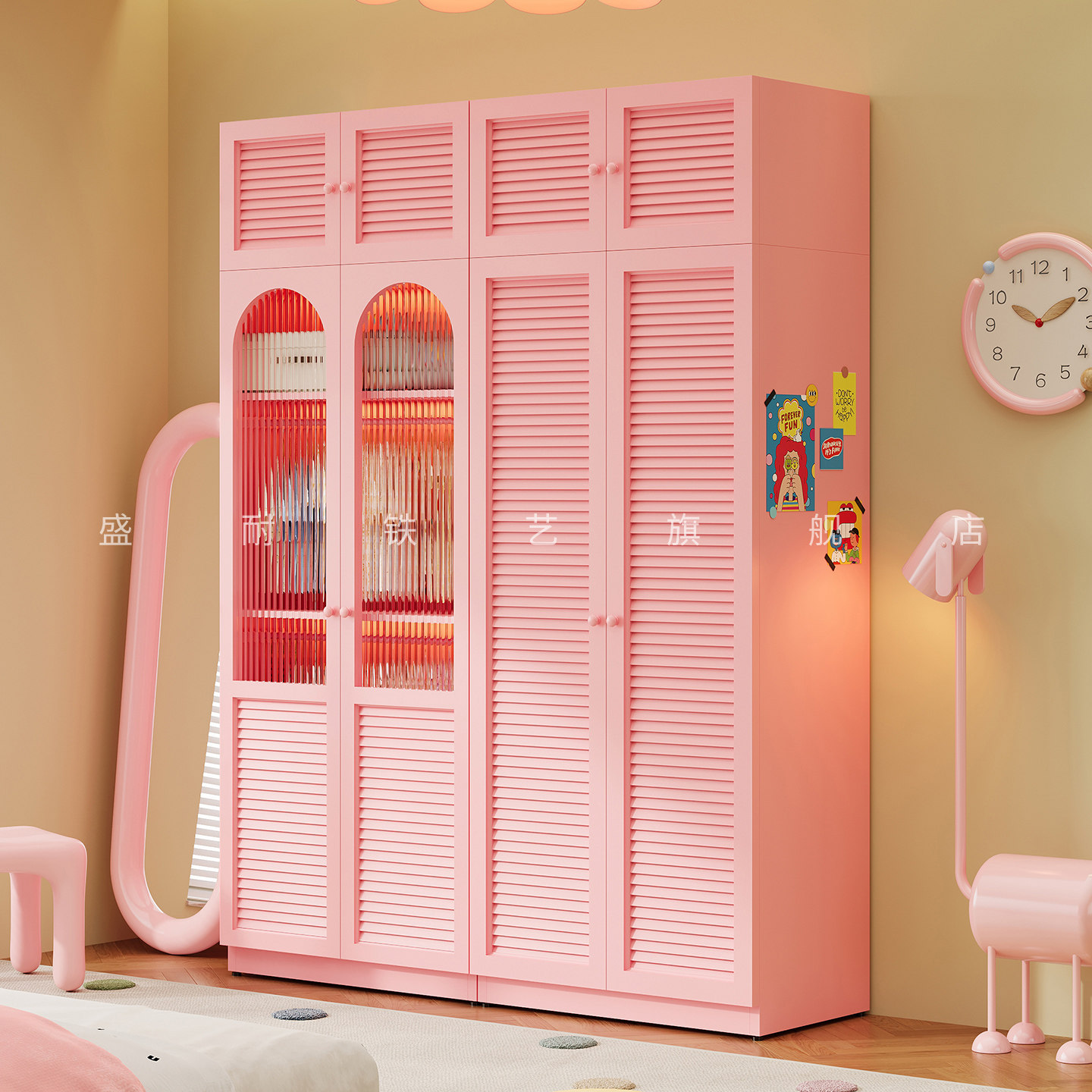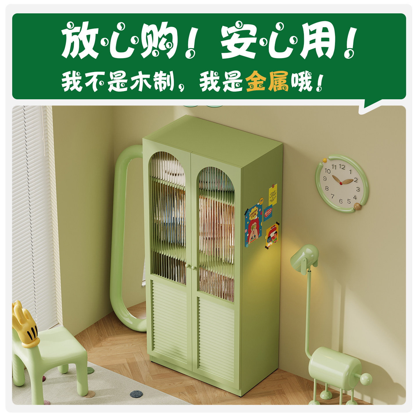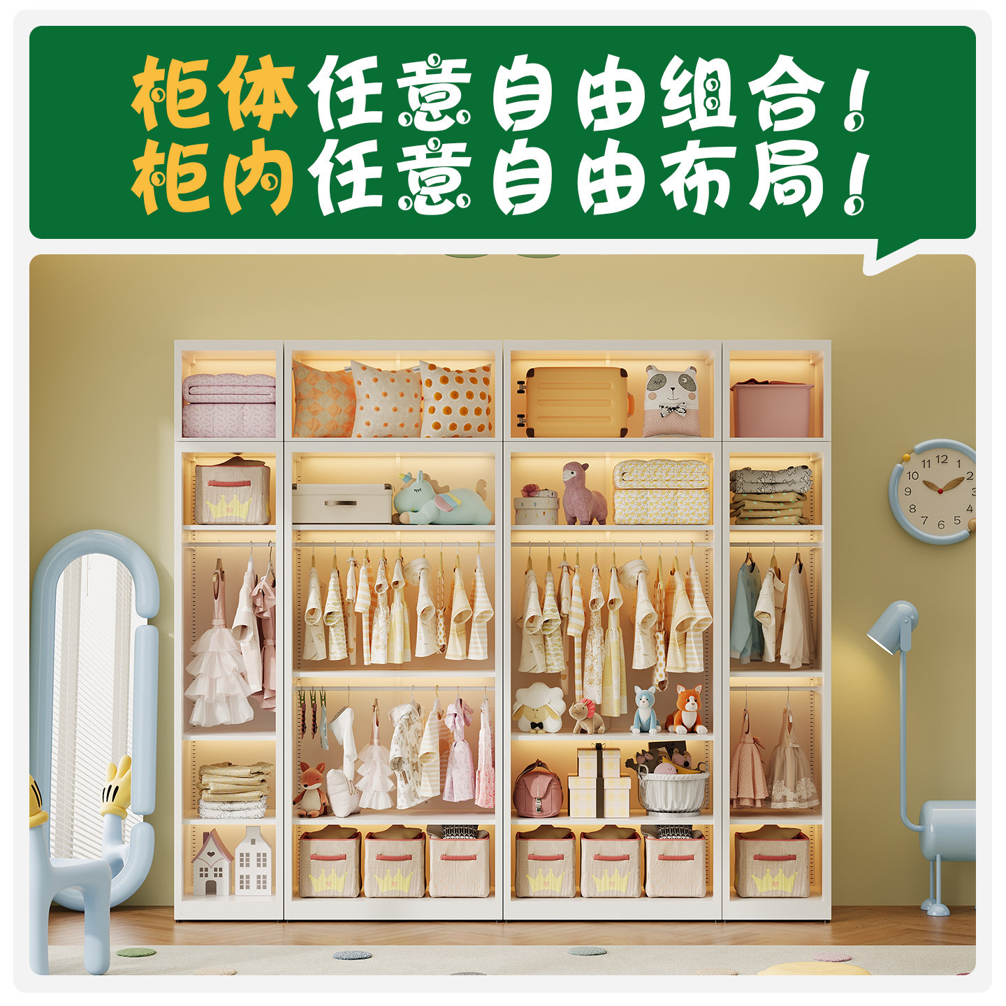 📚 多巴胺加厚儿童衣柜卧室家用组合收纳柜小户型房间整体铁皮储物柜