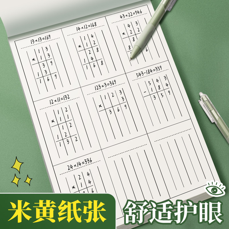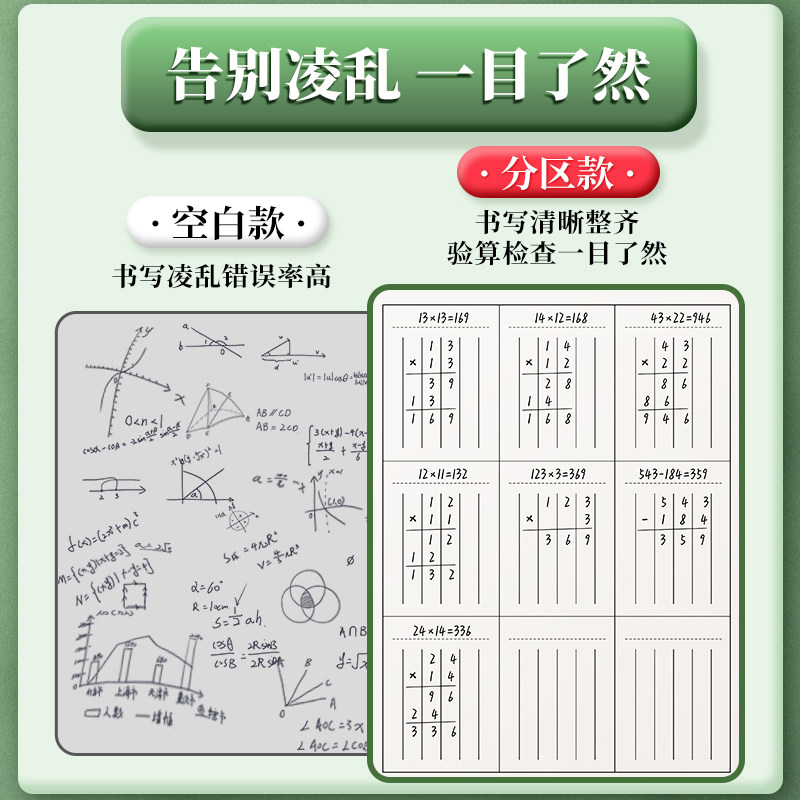 📚 草稿本小学生用分区草稿纸数学竖式计算运算对齐练习空白演草纸数位练习纸演算学生专用错题本16k考研中级C1