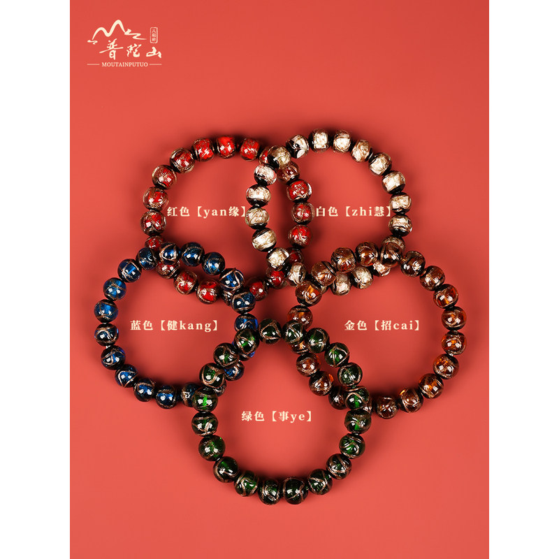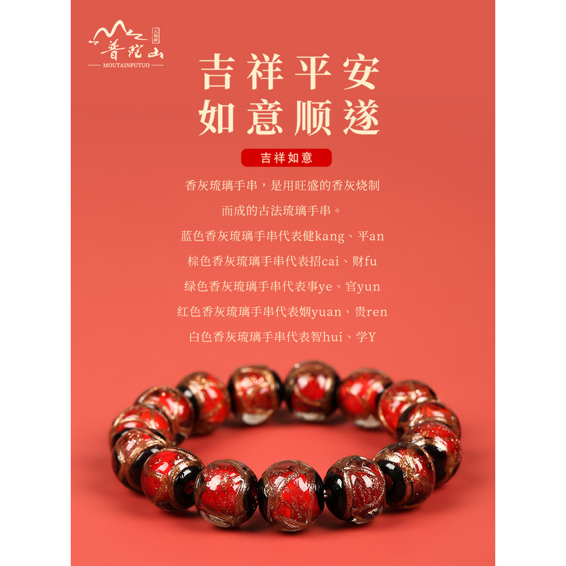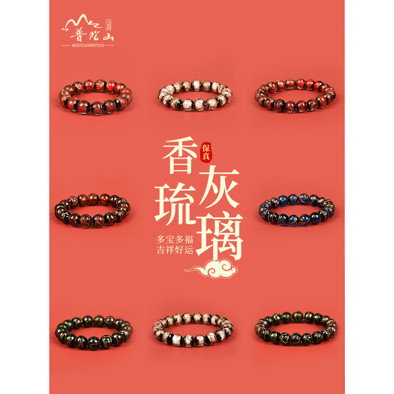 📚 普陀山香灰琉璃手串本命年单圈手链瓷珠子正品古法民族风男女礼物