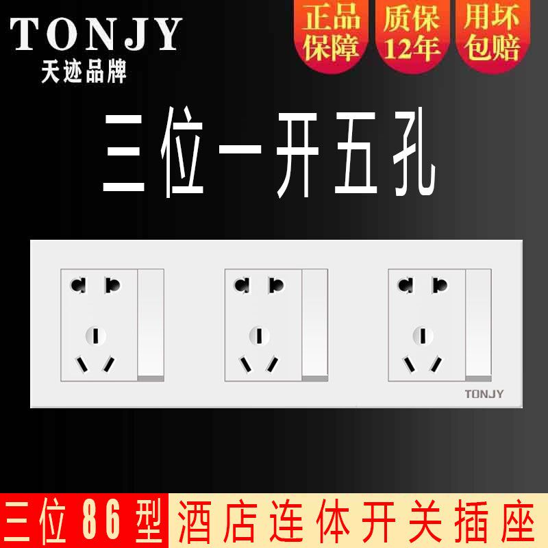 📚 三位86型连体开关插座一开五孔双控暗装三联1开5孔带开关电源面板