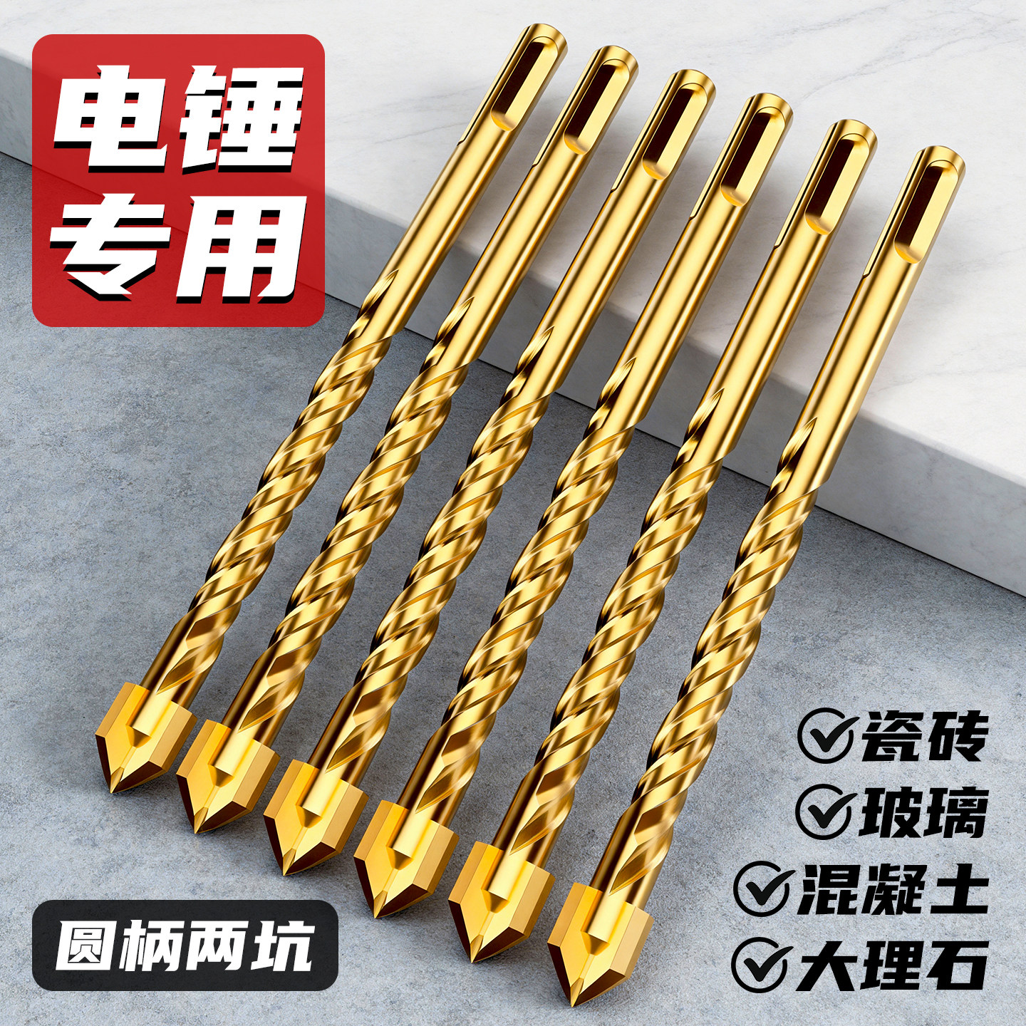 📚 瓷砖钻头混凝土打孔开孔超硬钨钢合金6mm玻璃水泥圆柄电锤冲击钻