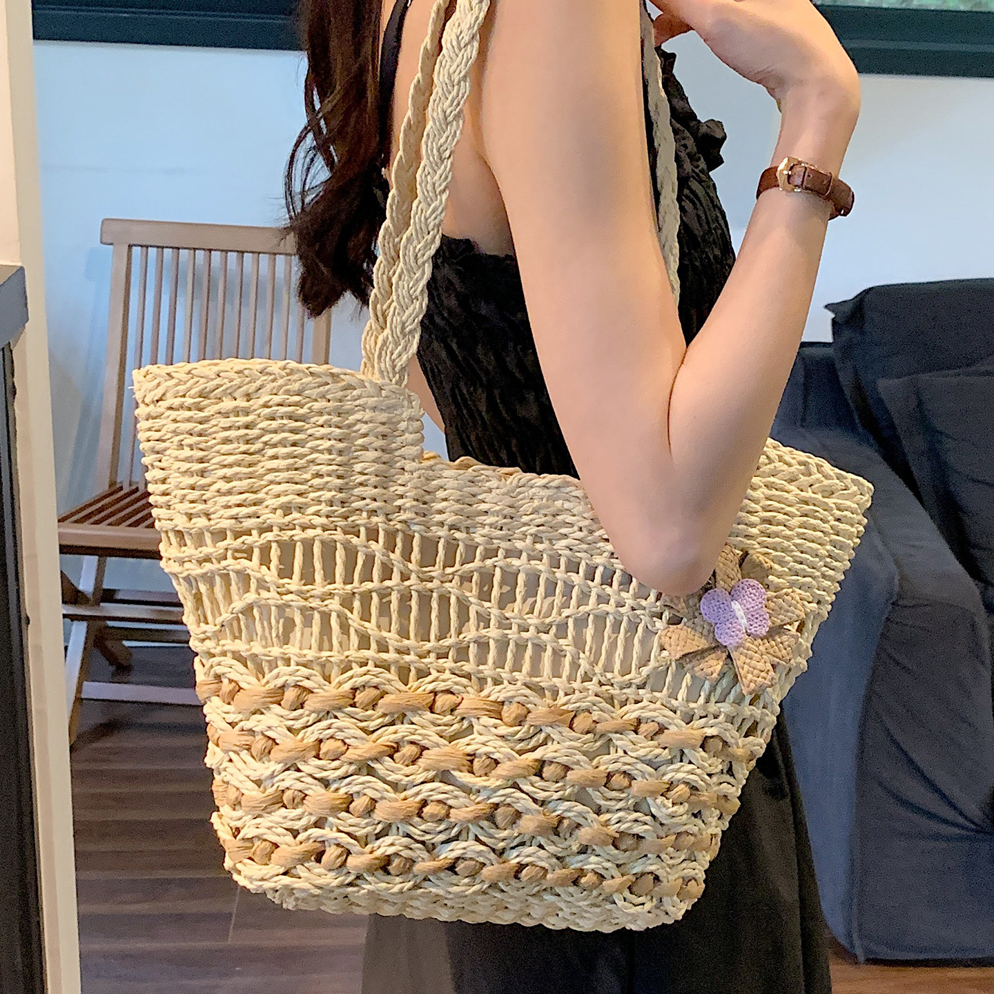 📚 2025新款编织包包女式大容量托特包海边沙滩草编包休闲单肩手提包