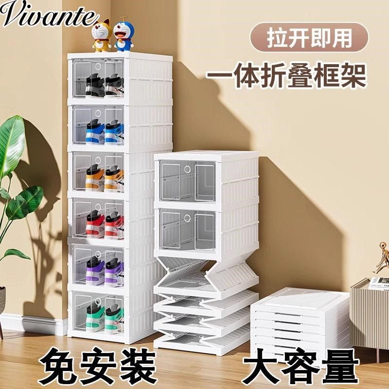 📚 德国新型免安装h鞋盒收纳盒多层加厚折叠鞋架透明鞋柜靴子收纳神