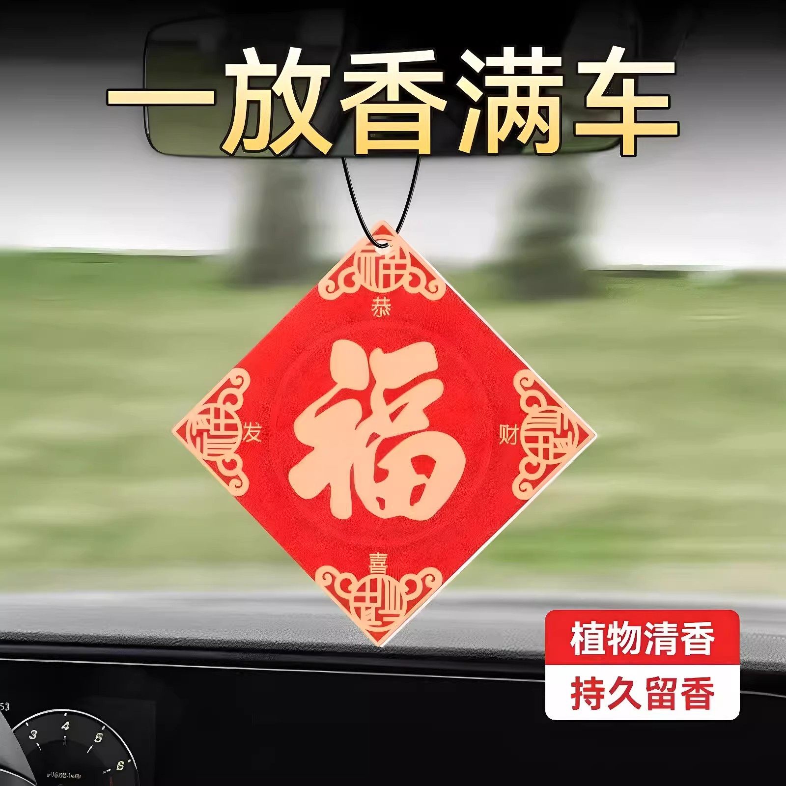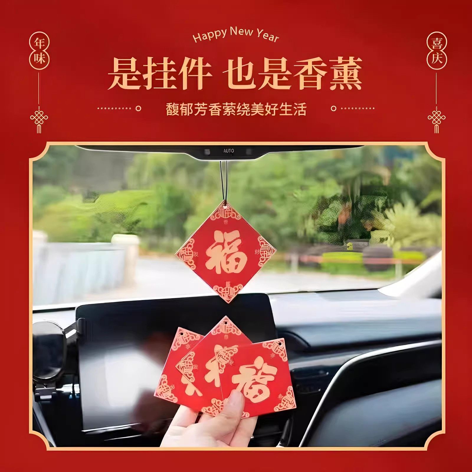 📚 中国红汽车香片挂件车载香薰持久淡香福车内挂件悬挂净化空气清新