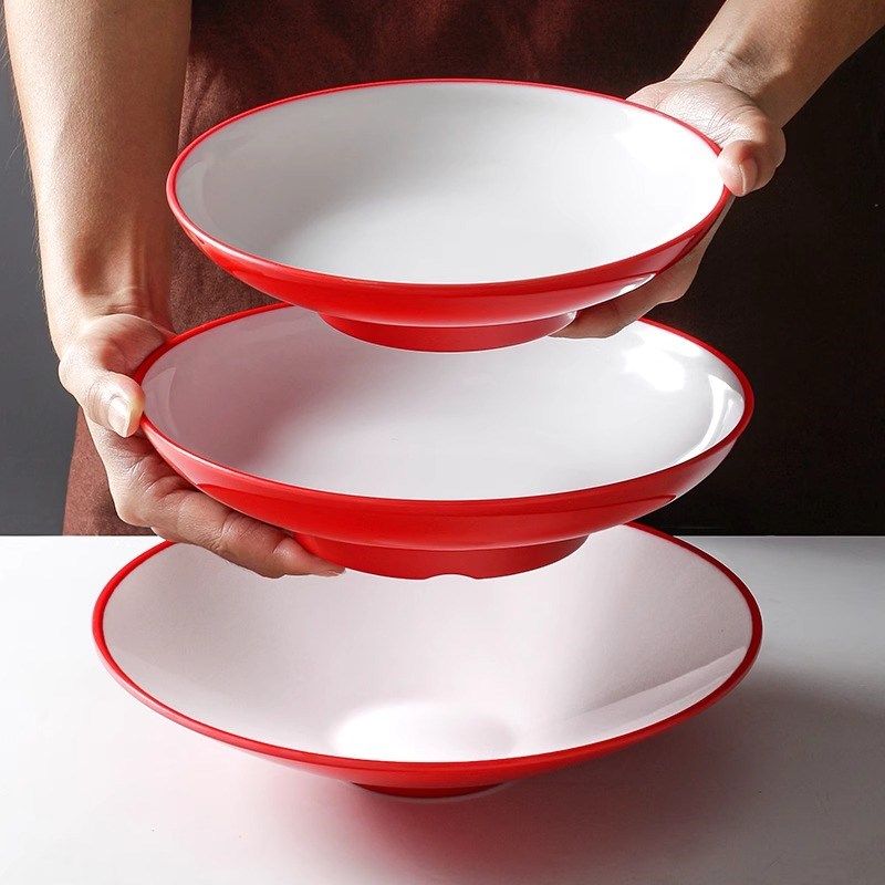 📚 极速凉皮专用碗密胺宽口斗笠碗面馆专用I碗商用塑料拌面捞面麻辣