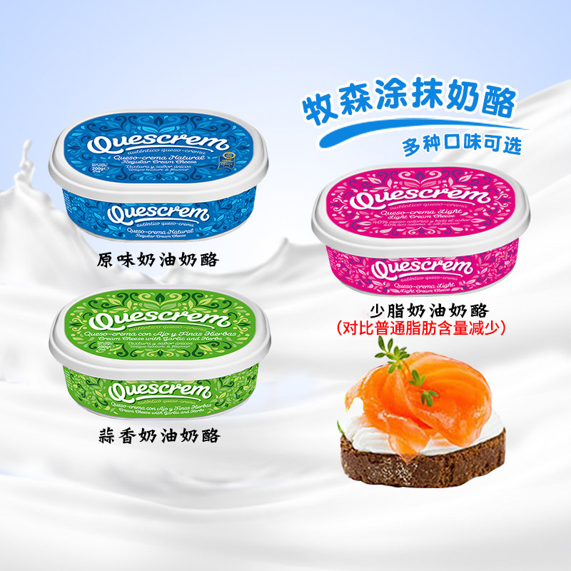 📚 牧森奶油奶酪蓝纹风味即食涂抹面包奶油芝士蒜香味减少脂干酪200g