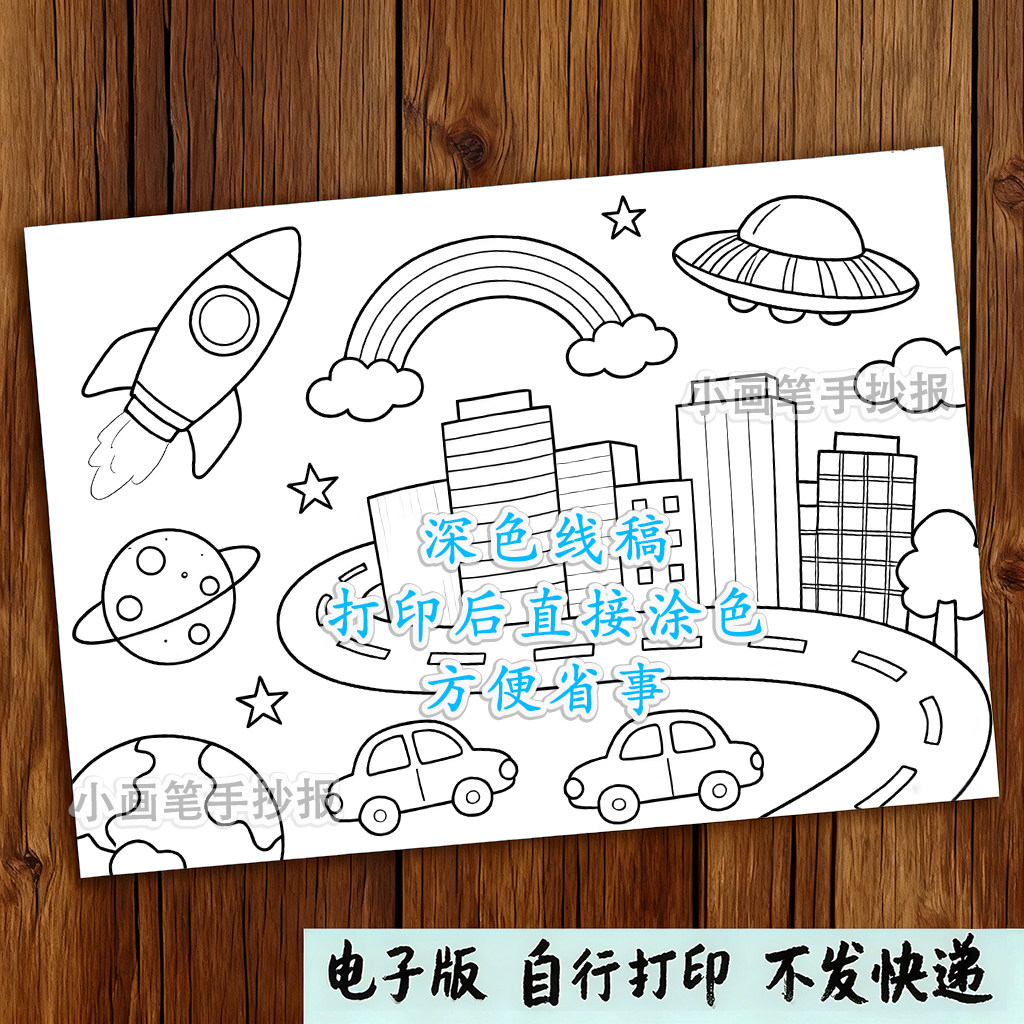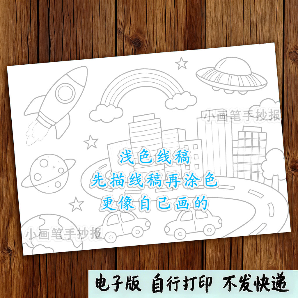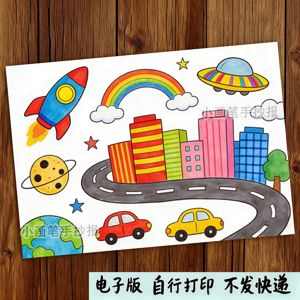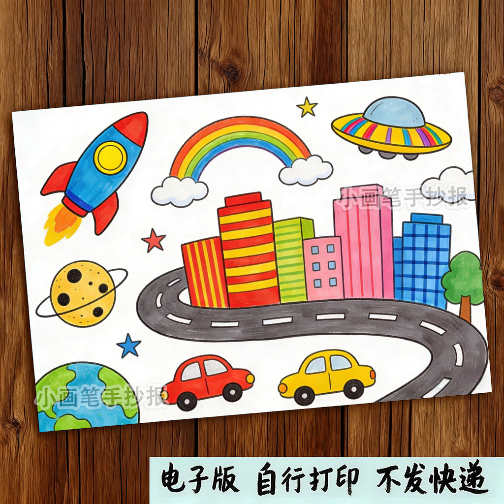 📚 未来城市儿童绘画作品小学生畅想未来世界科技发展科幻画模板