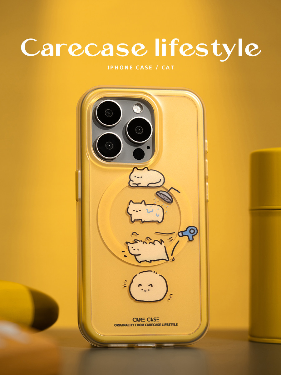 📚 CARECASE 烘干猫咪二合一磁吸磨砂手机壳 适用于苹果iPhone17 16 15 14 13 ProMax 原创设计 可爱卡通有趣
