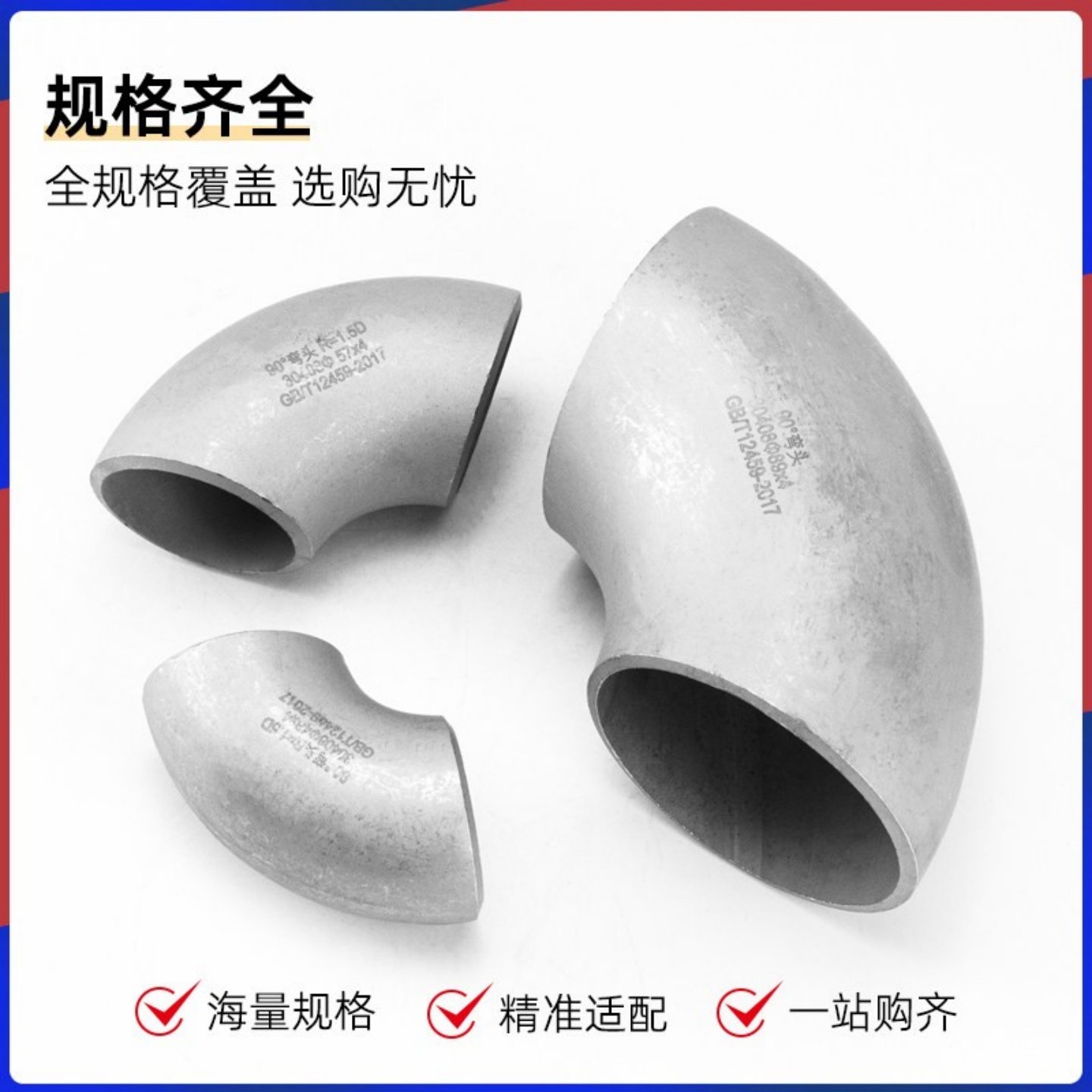 📚 304不锈钢国标1.5D焊接弯头90度工业级无缝直角对焊冲压管件12459