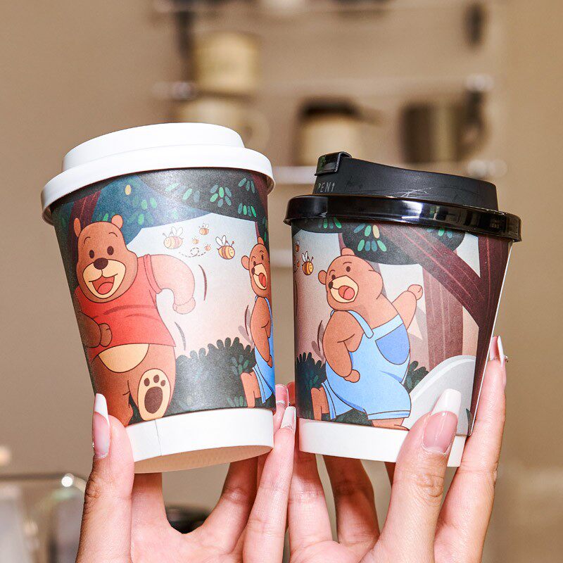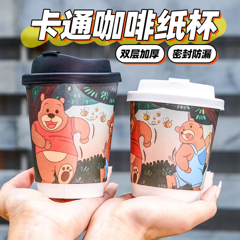 📚 一次性奶茶咖啡杯子纸杯带盖家用商用外带打包杯热饮定制印logo