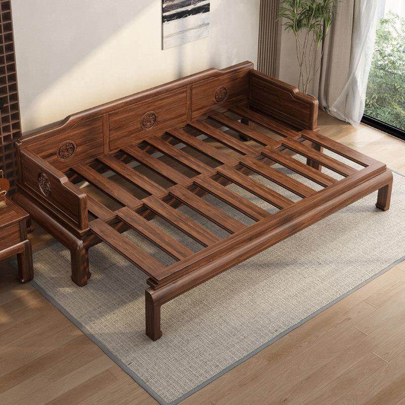 📚 寸禾宋式美学南美胡桃木新中式实木伸缩推拉罗汉床折叠两用沙发床