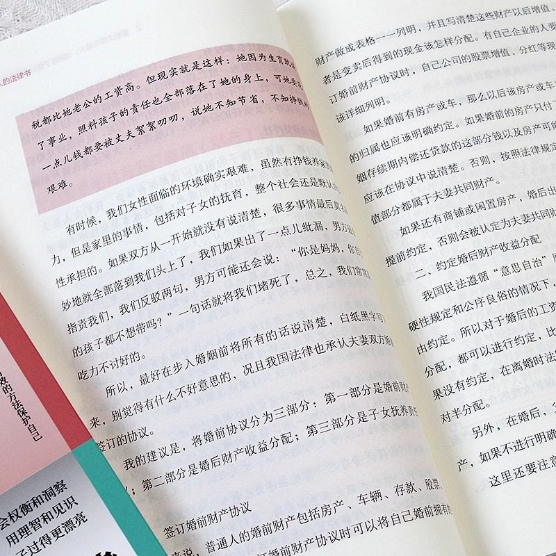 这个法律书涵盖了婚姻家庭职场中会遇到的问题,让女人在面对这些问题时能够有法可依,有章可循。里面的内容专业、实用,真的是女人博弈心理学的专属书籍。它就像一座灯塔,照亮了女人在人生道路上的方向。