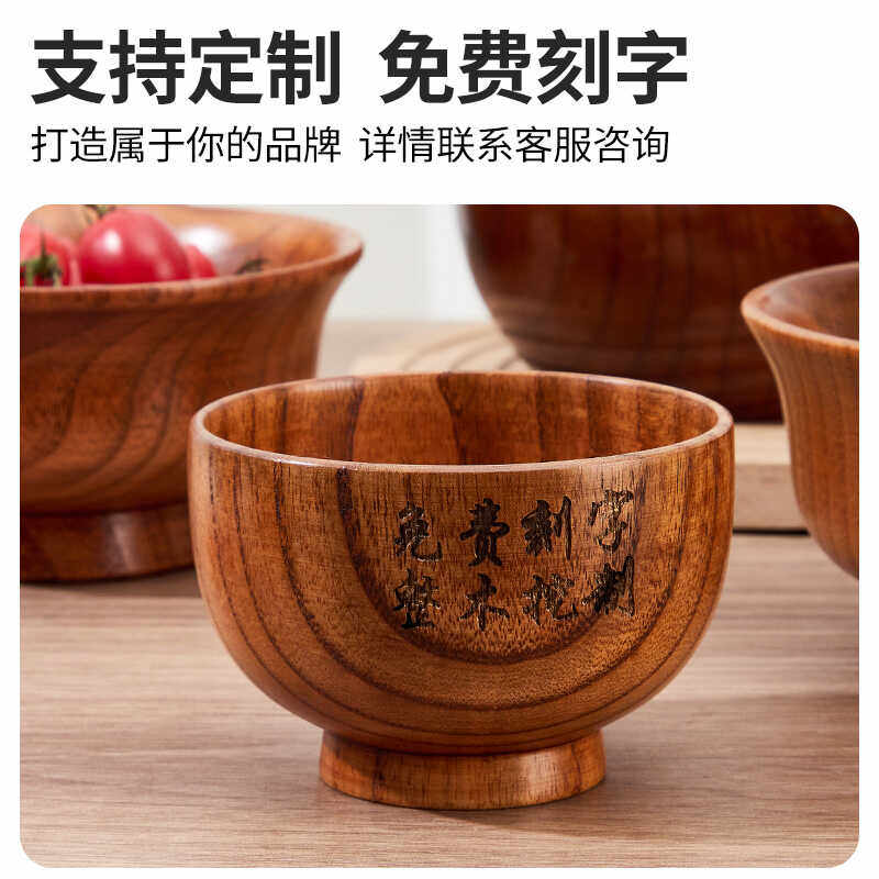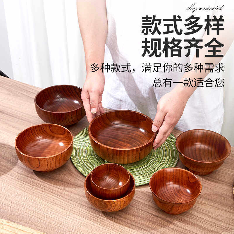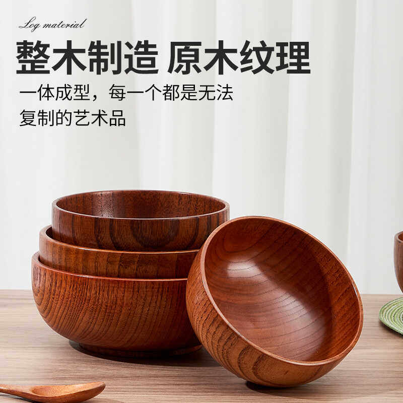 📚 日式酸枣木碗家用宝宝饭碗汤面碗复古实木小碗漆器木质沙拉碗果盘