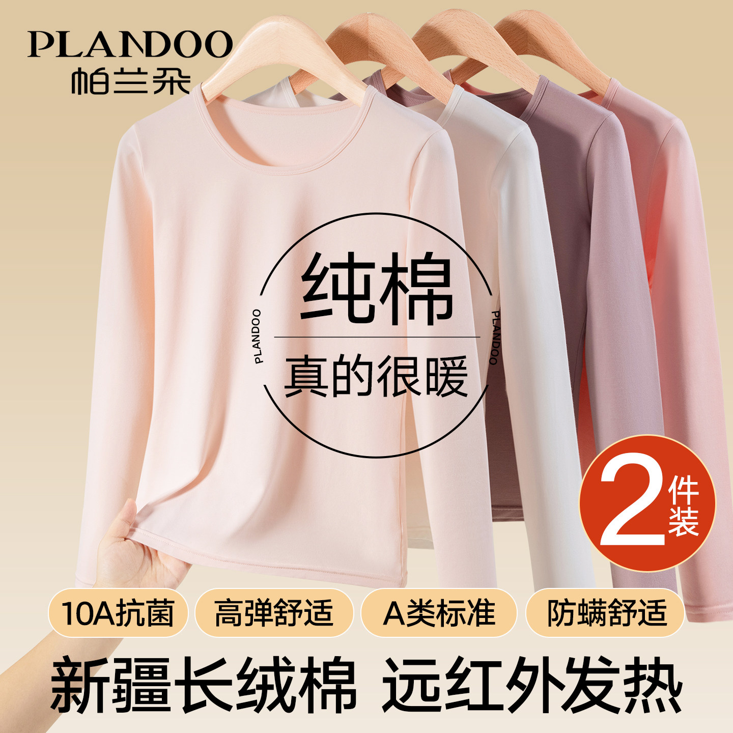 📚 帕兰朵纯棉秋衣女款单件上衣全棉保暖内衣女士内穿打底棉毛衫冬季