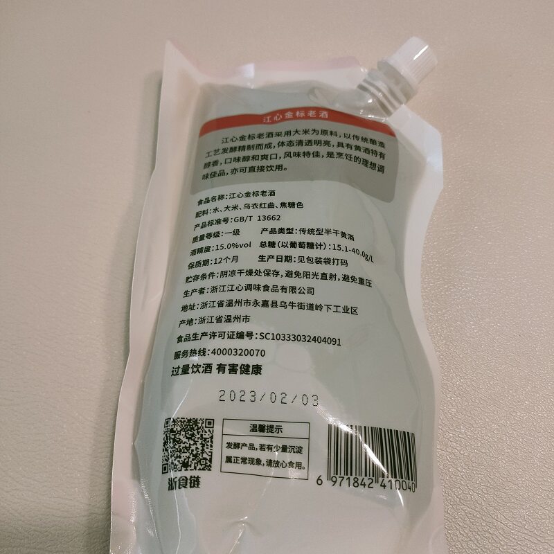 📚 江心金标老酒带嘴500ml每袋海螺原金牌老酒温州特产料酒加饭黄酒