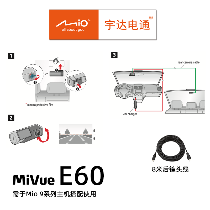 📚 Mio宇达电通MiVue E60车内2K后镜头,需搭配Mio9系列主机才可使用
