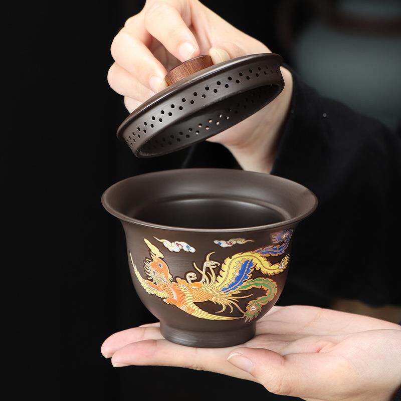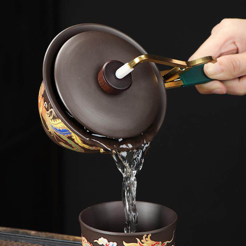 📚 凤遇热变色龙紫砂手抓手壶防烫三才碗网红功夫茶具公盖司LOG20240