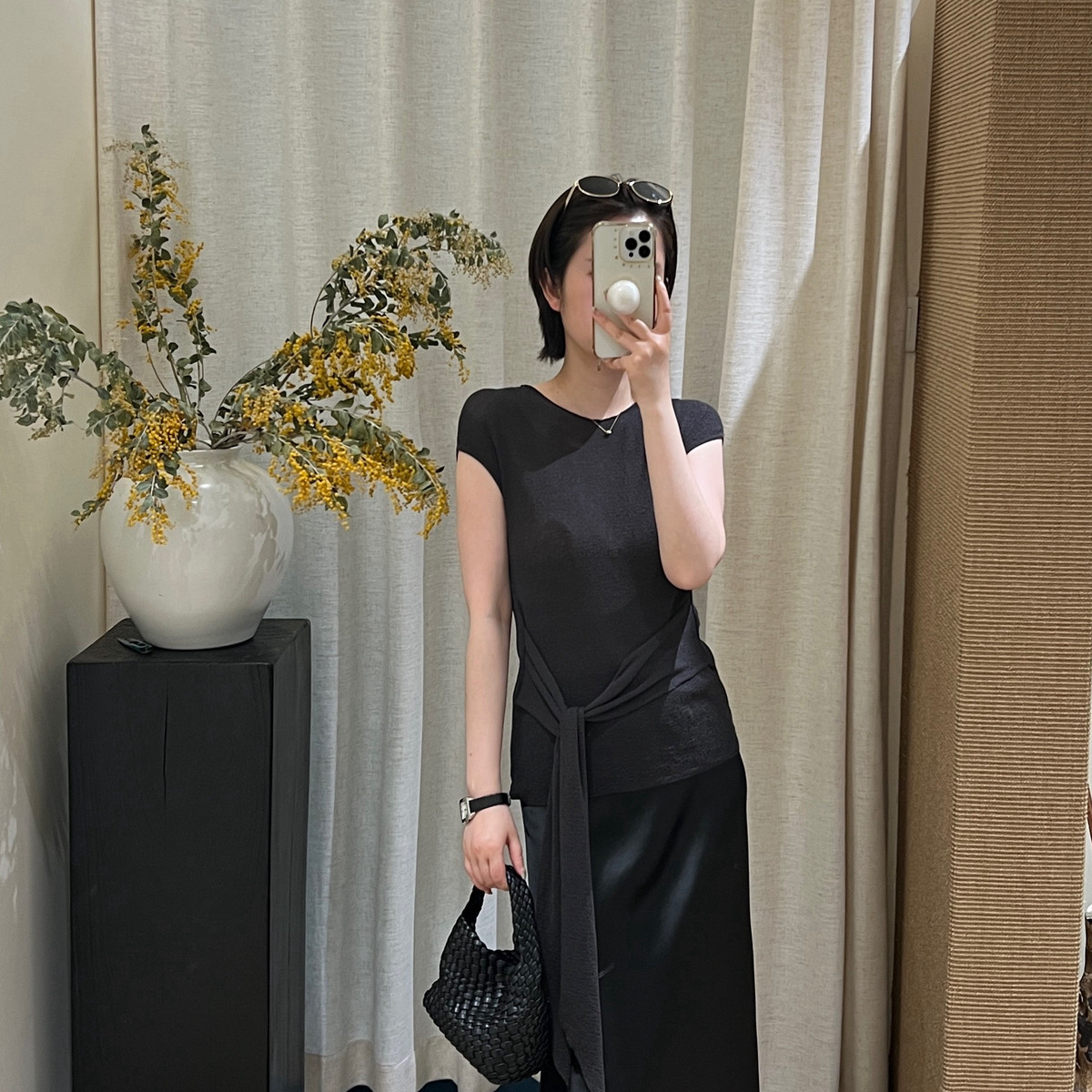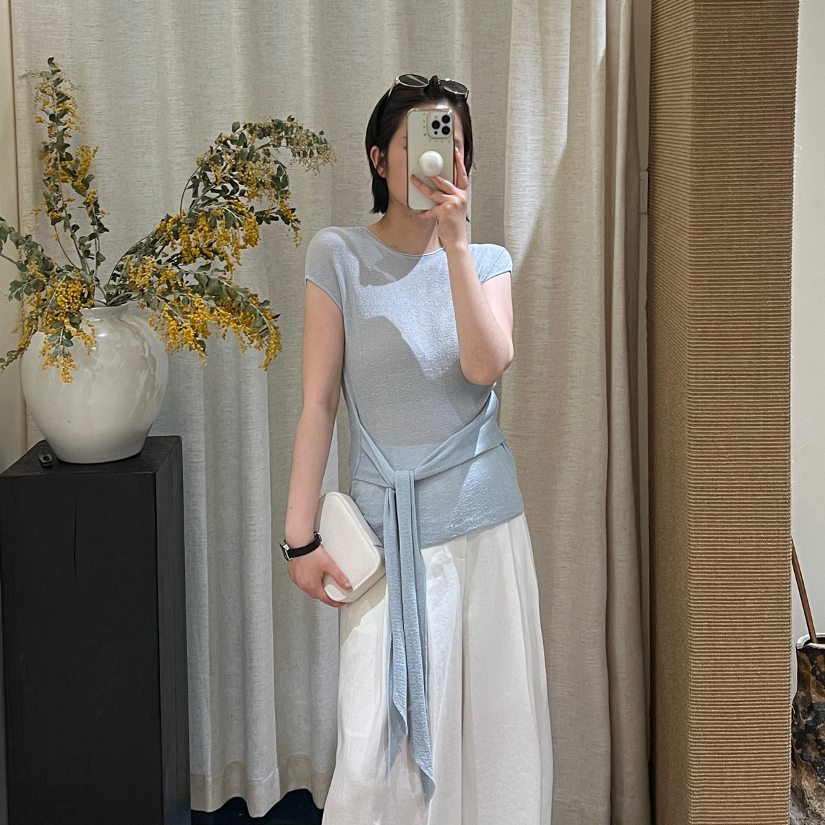 📚 SUNFLOWER-SUNFOWER莱赛尔收腰绑带显瘦上衣短袖百搭针织衫A15700