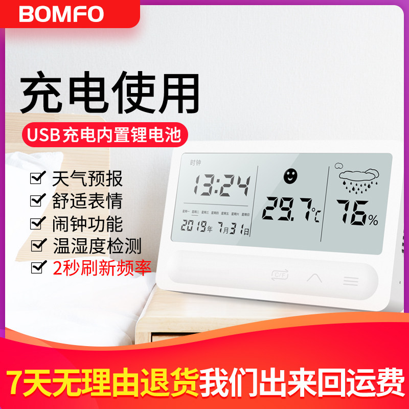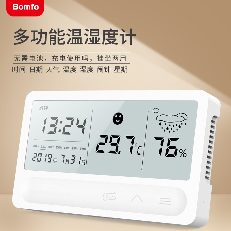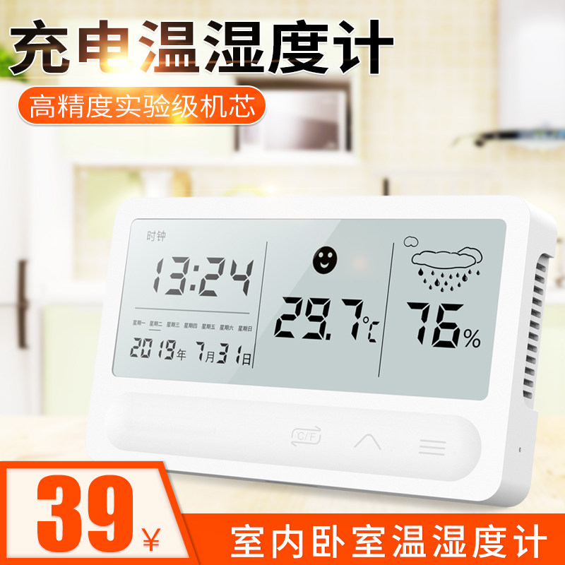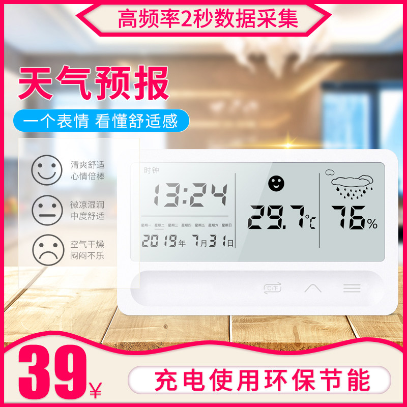 📚 充电温度计家用室内高精度湿度计带表情台式壁挂式婴儿房温湿度表