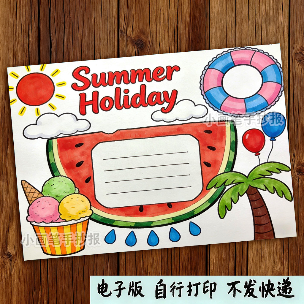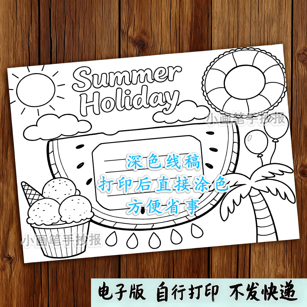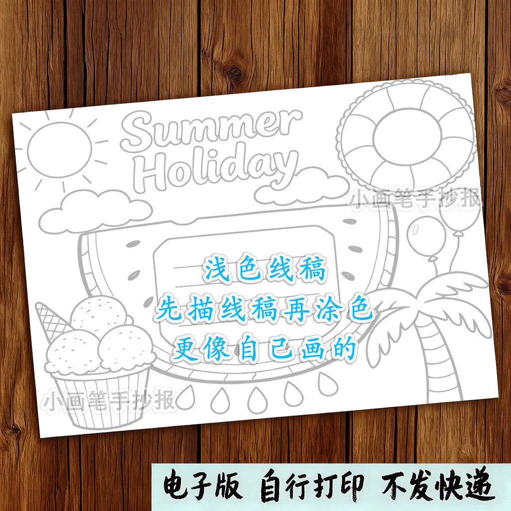 📚 暑假生活英文英语手抄报电子线稿模板Summer_Holiday假期旅行