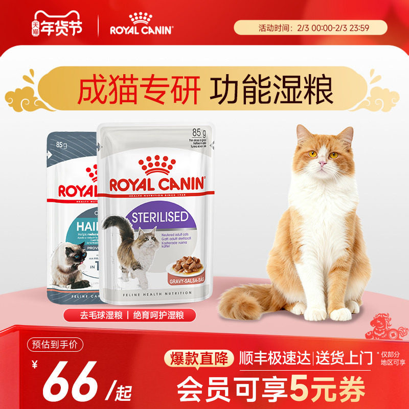 📚 皇家猫粮 成猫湿粮绝育呵护/去毛球 85g主食级猫咪营养湿粮餐包