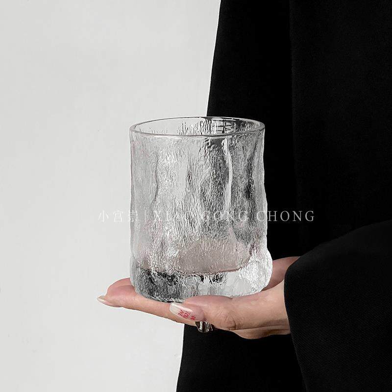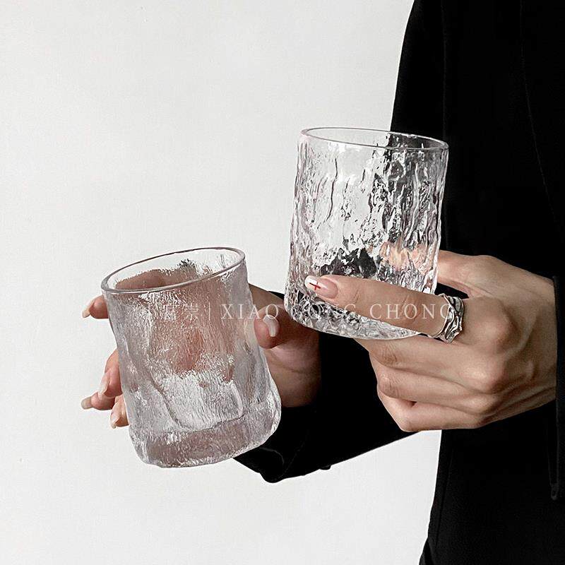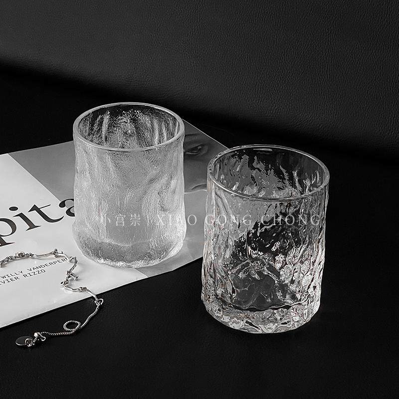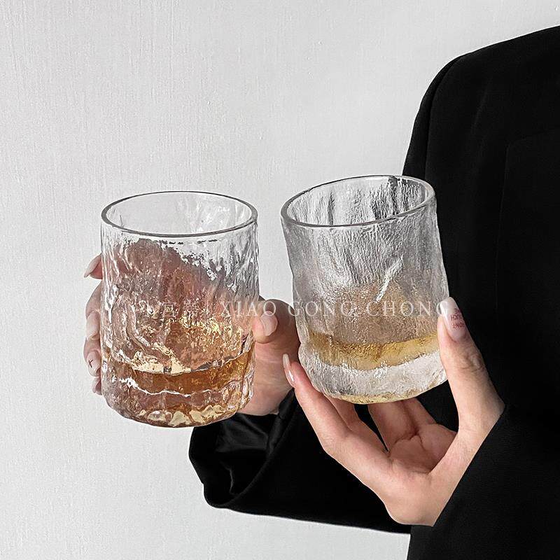 📚 ins锤纹威士忌杯冰川纹雨雾杯果汁杯咖啡冷饮杯家用玻璃水杯茶杯