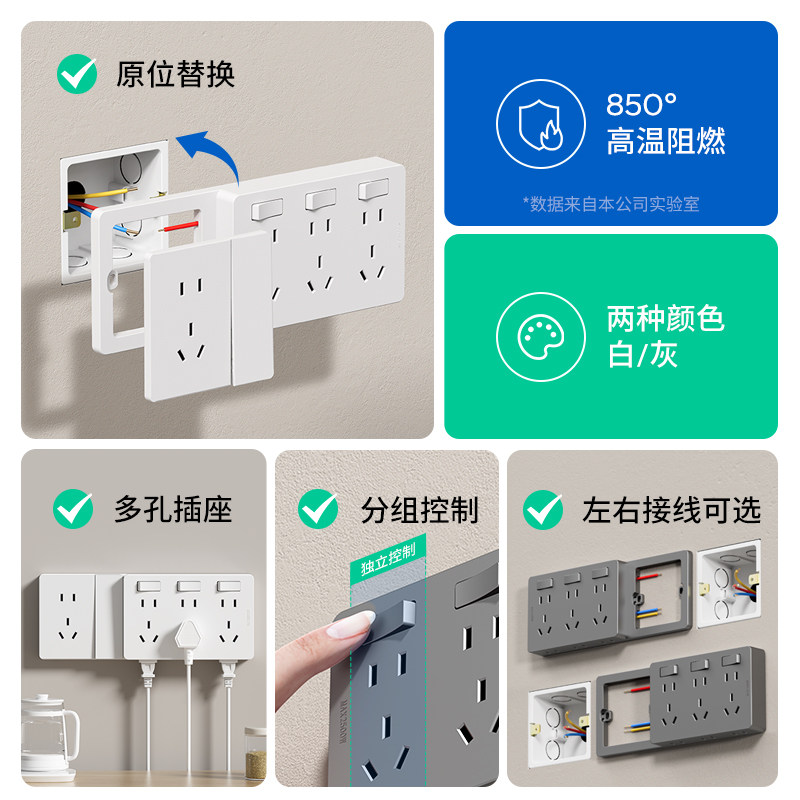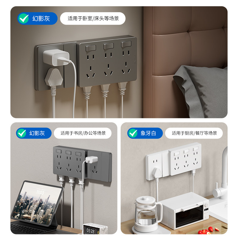 📚 国际电工家用86型扩展插座原位替换一开五孔插座带开关墙壁插排板