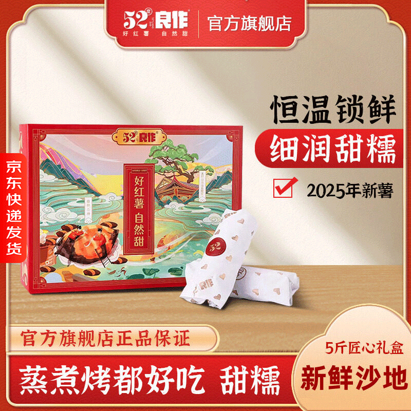 📚 52度良作红薯黄心蜜薯25年新鲜沙地番薯农家自种山芋5斤匠心礼盒
