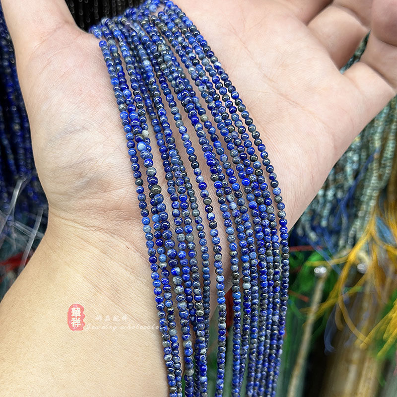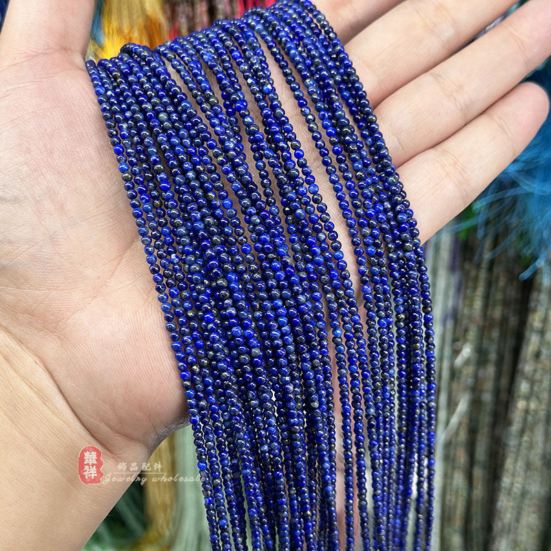 📚 天然无优化青金石小圆珠 2-3mm小颗粒散珠子 diy手链项链串珠配件