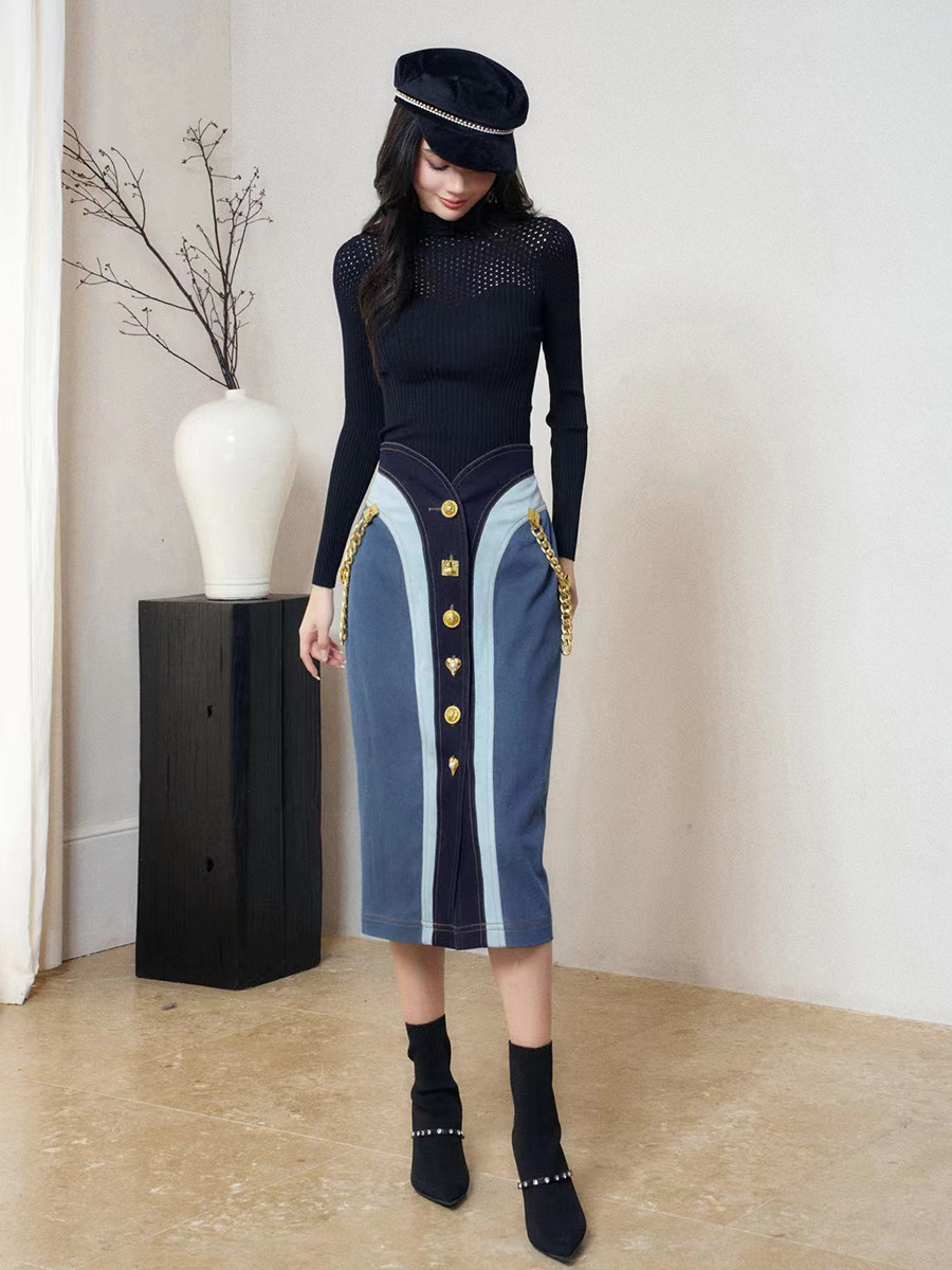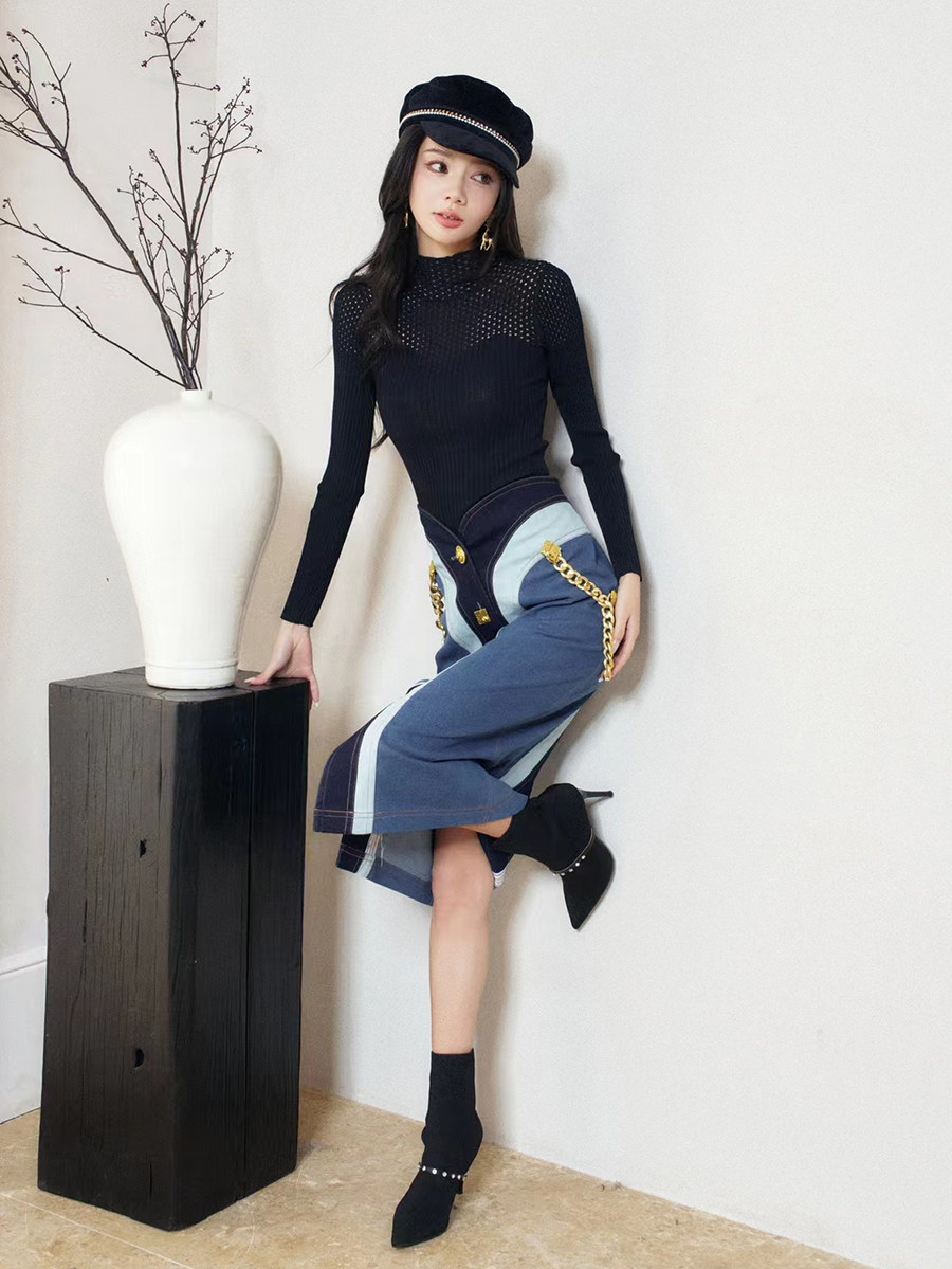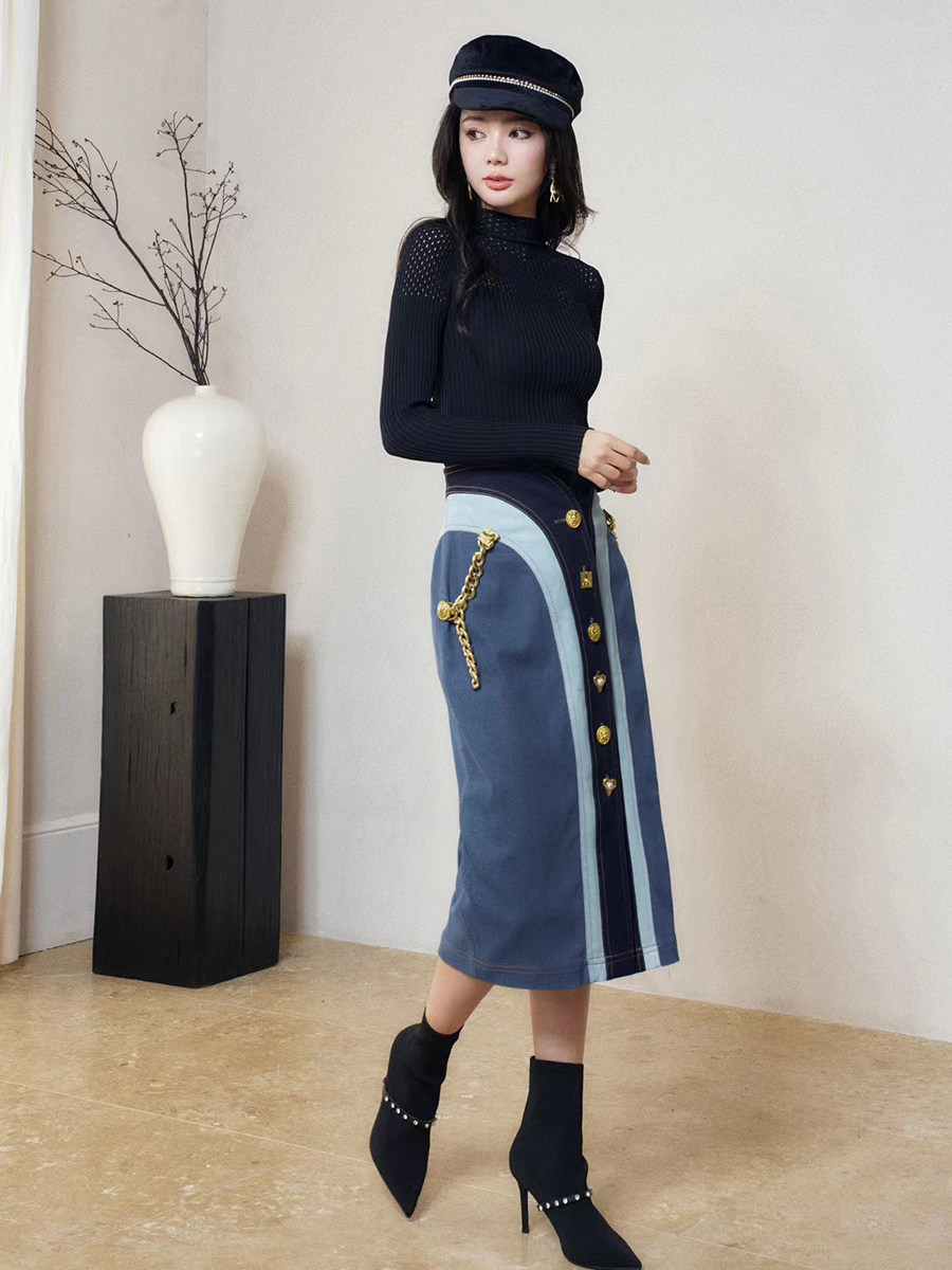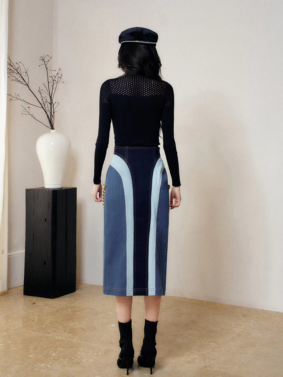 📚 TT.RR.YY/ME设计师品牌拼色半身裙设计感牛仔裙24春秋女裙潮现货