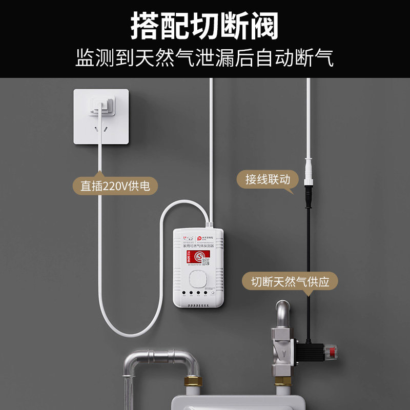 📚 凌防燃气泄漏报警器3c认证家用厨房新国标天然气煤气漏自动切断阀