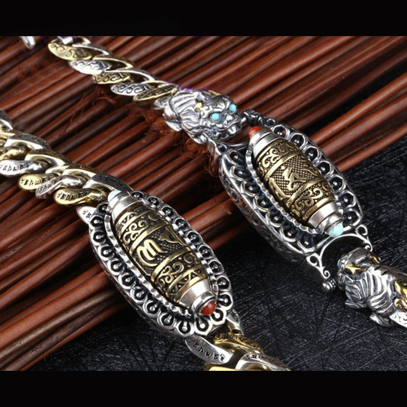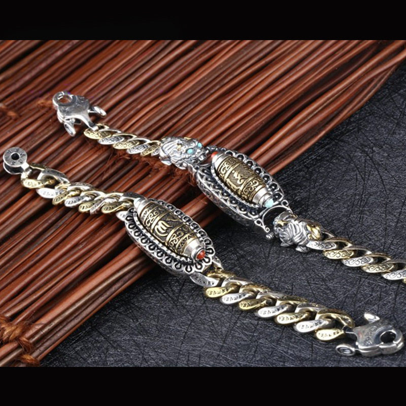 📚 新款复古手工乌兰花旋转天珠貔貅六字真言坦克链手链设计