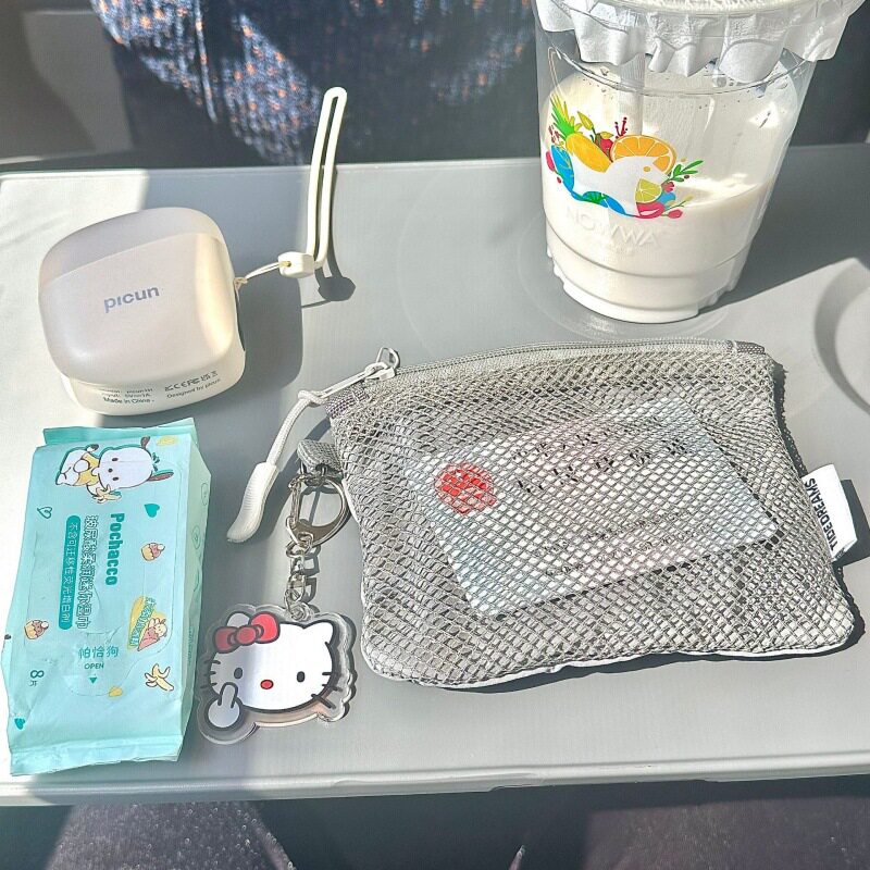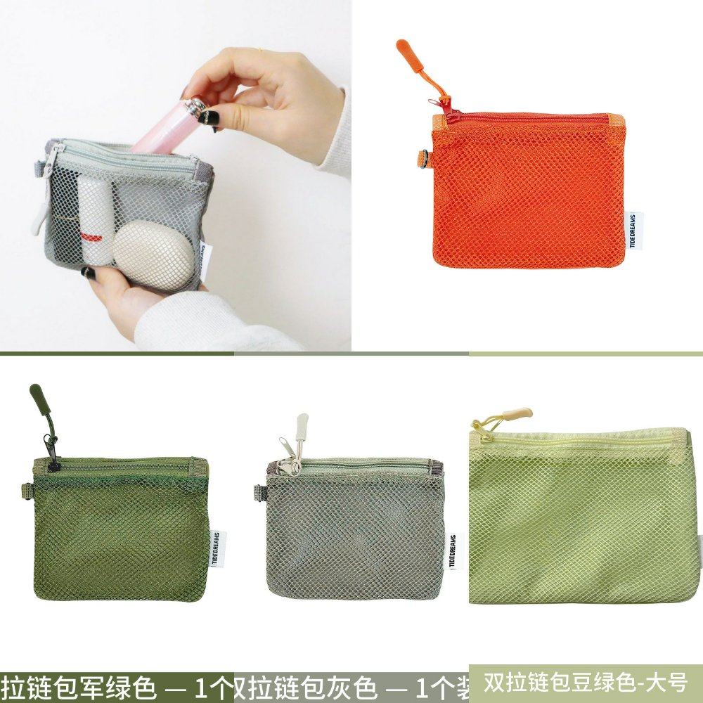 📚 便携网格包双层拉链迷你学生收纳包零钱包化妆品小物件整理随手包