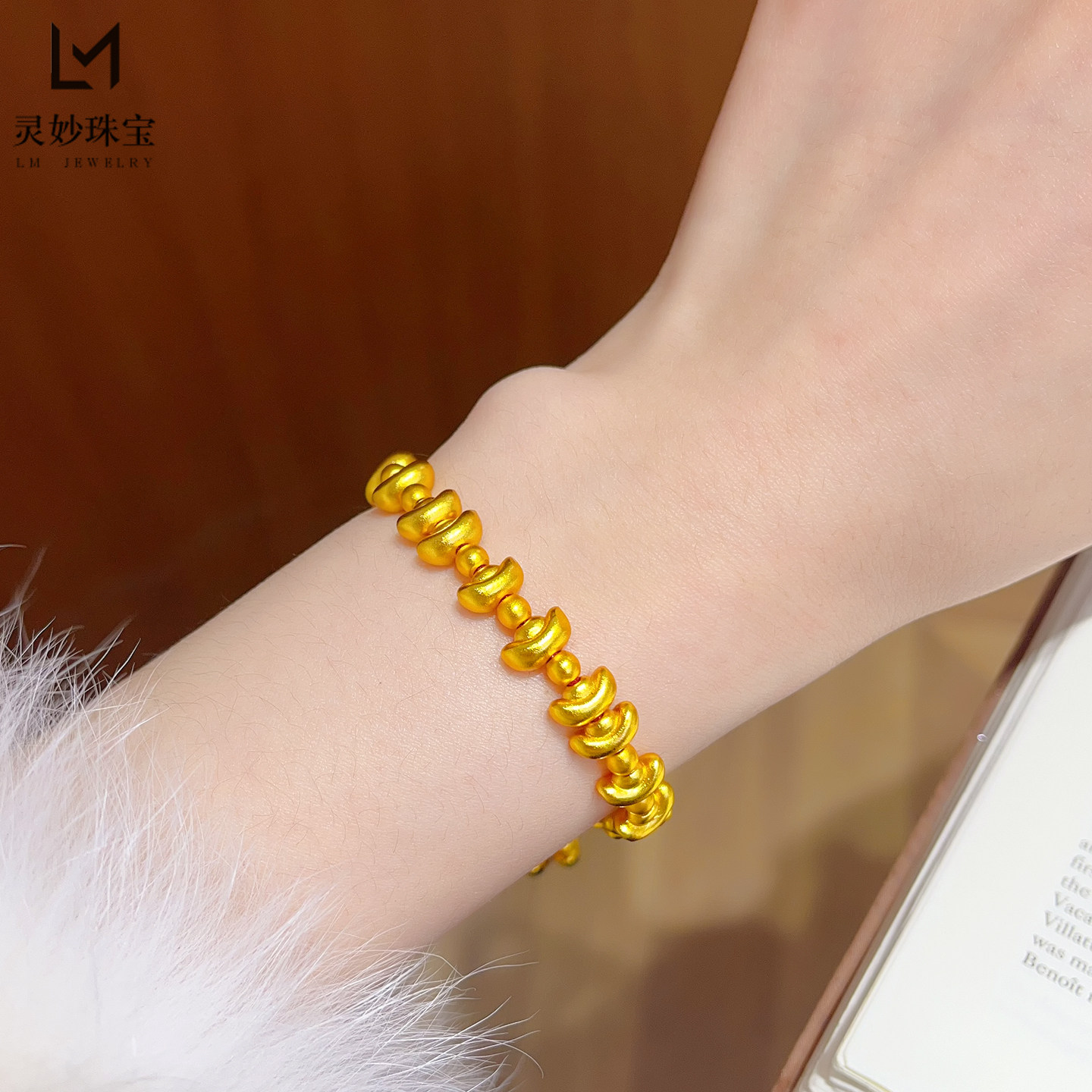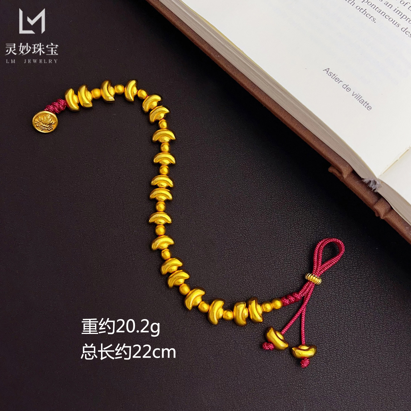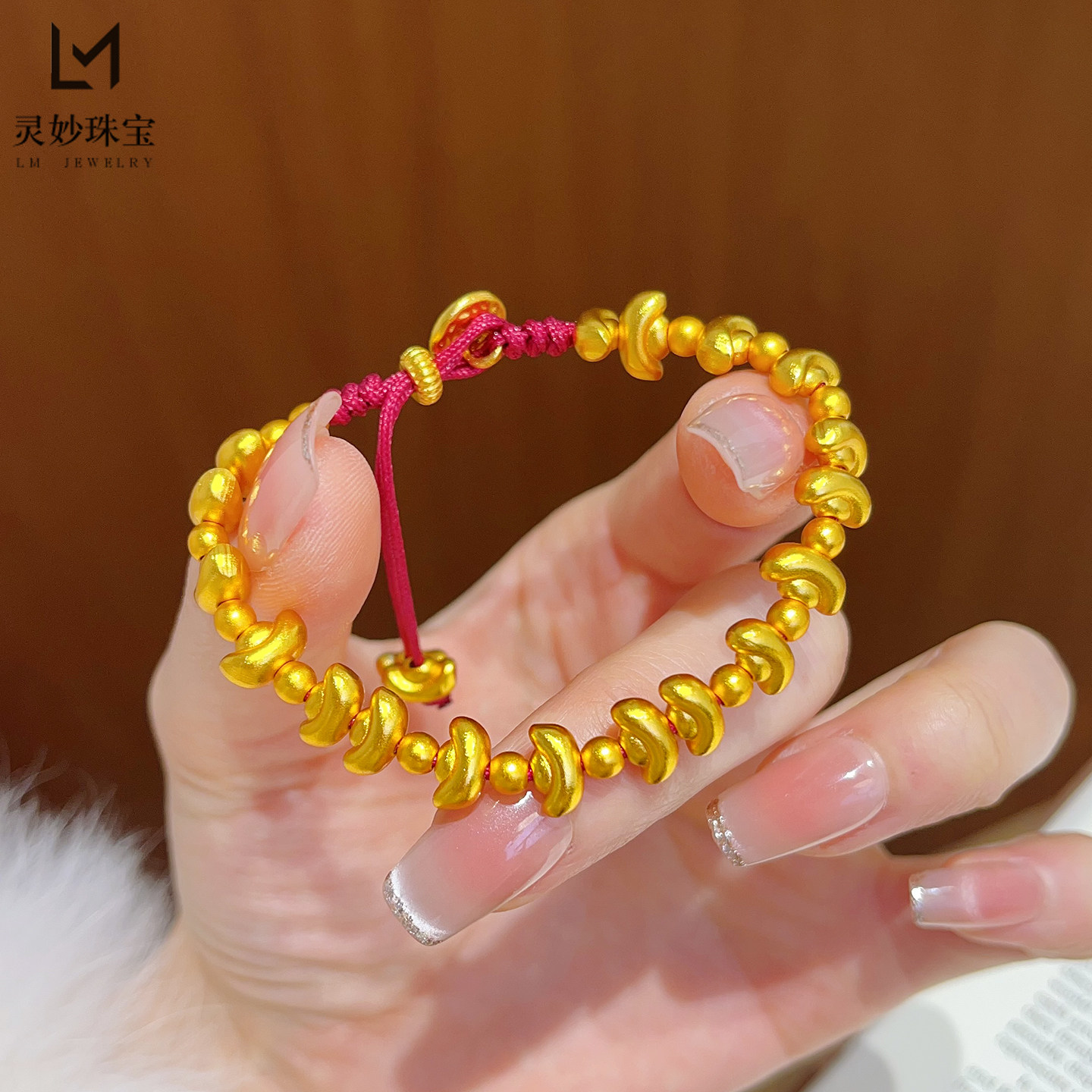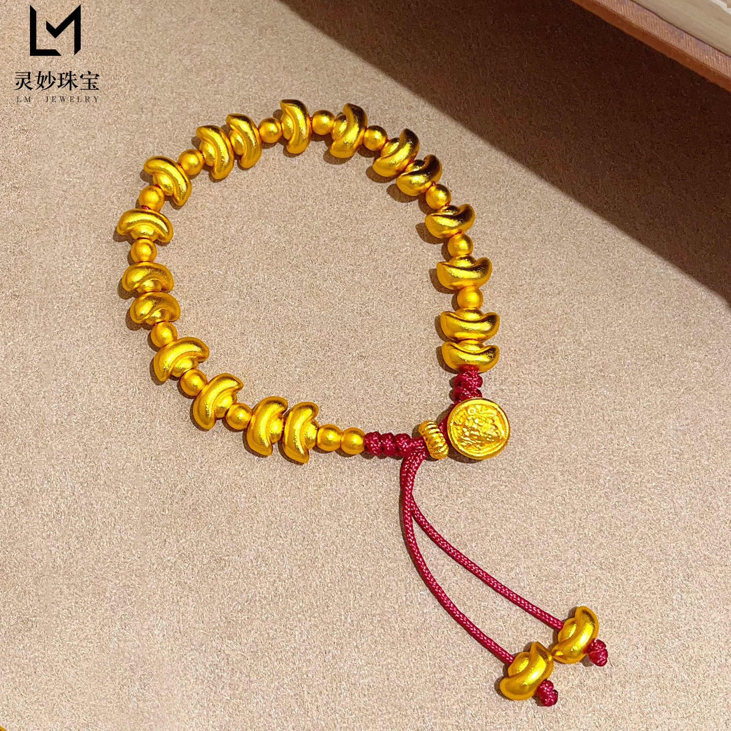 📚 金店同款古法沙金满圈小元宝转运珠红绳手链黄财神编织手绳国风女